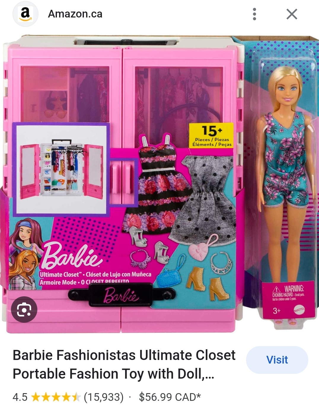 The Barbie Ultimate Closet doll and accessory playset has style inside and out with included clothing and accessories!
