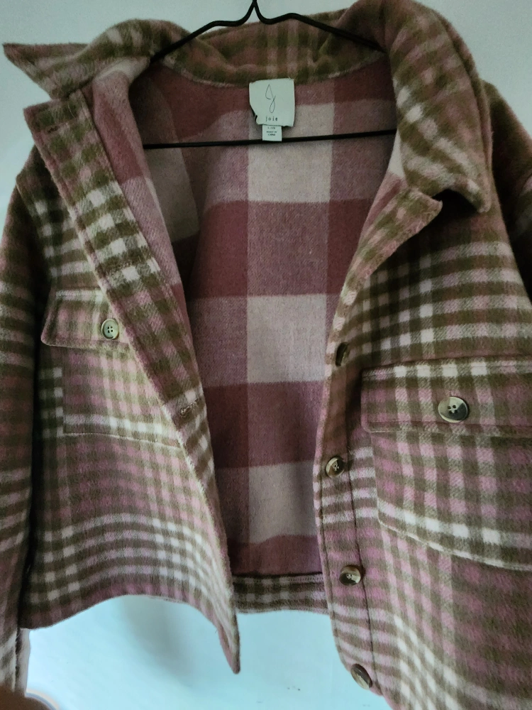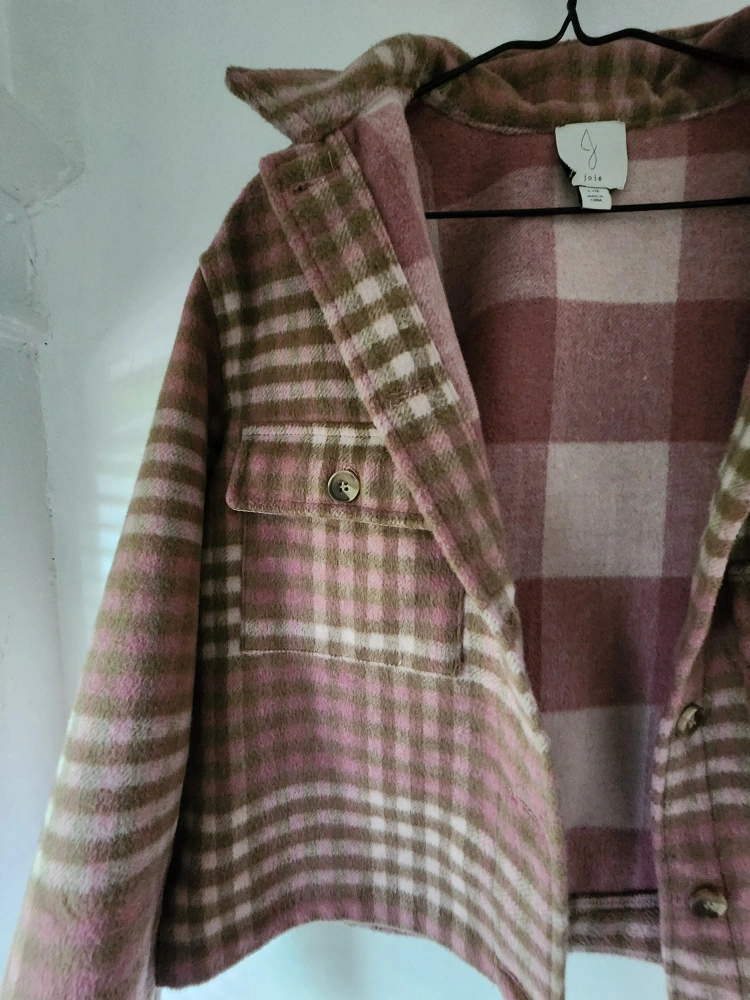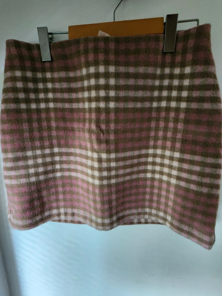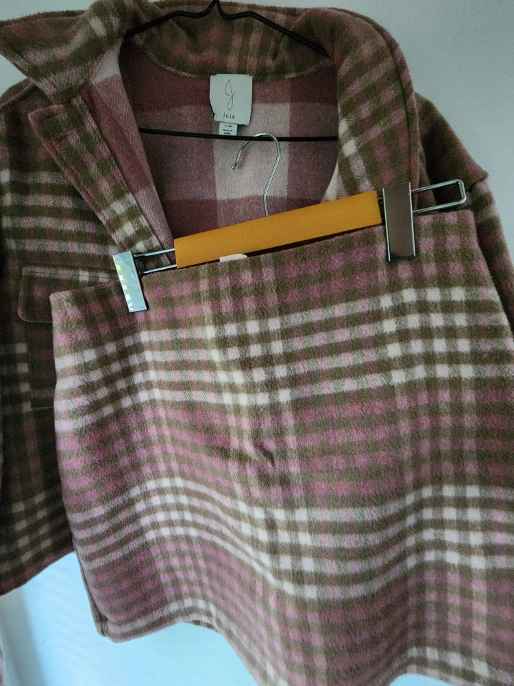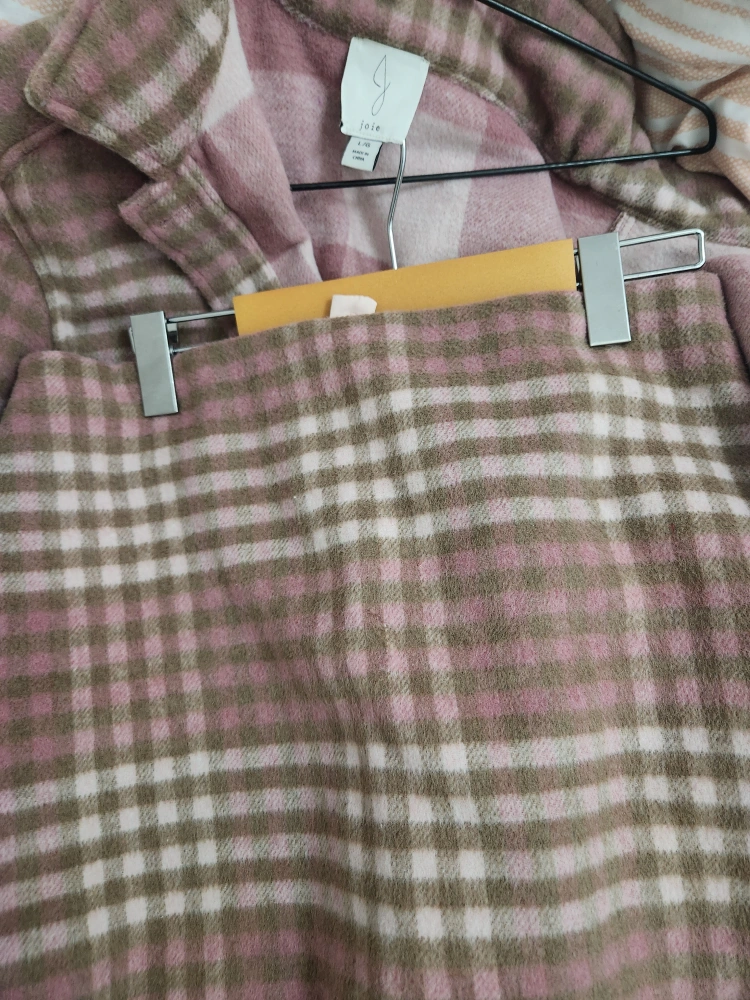 really cute pink check skirt and shacket set .