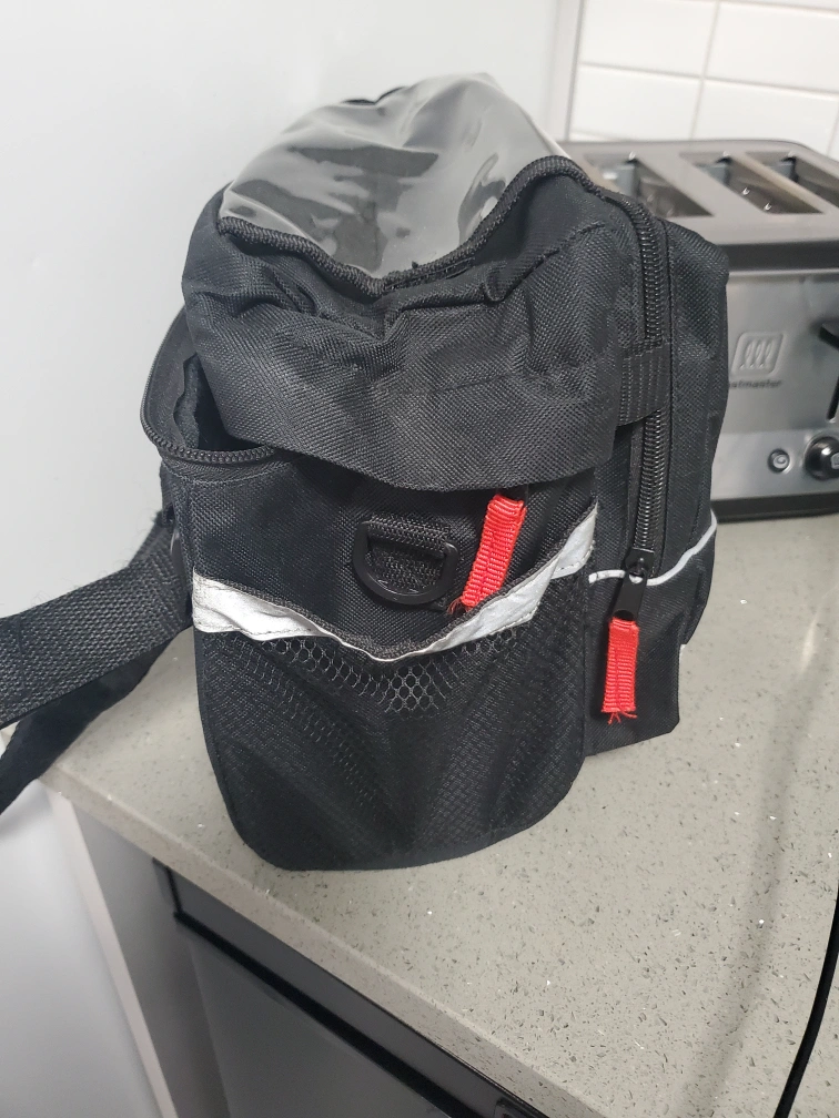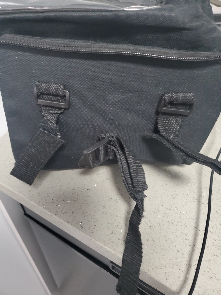 used only couple times. Paid 50 plus tax. Easily attaches to handle bars with velcro straps. Fits alot inside main compartment with 4 additional outside pockets. Cash and pickup only. Schwinn bike also listed. Front and Cherry.