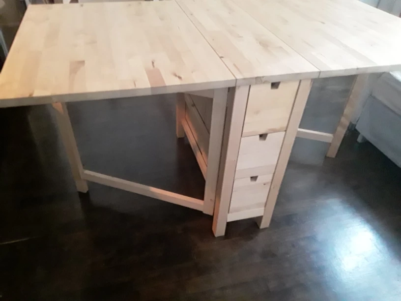 very extendable table with drawers used condition has a repajr on bottom drawer but works perfectly well priced to sell great for apartments condos anywhere you may need it