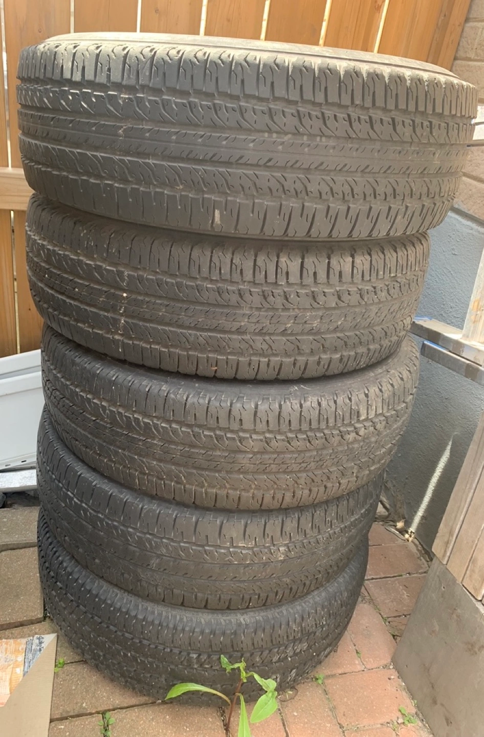 Also 1 Bridgestone Dueler all season tire used as a spare.