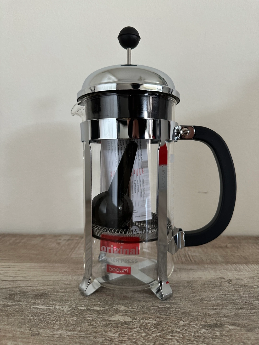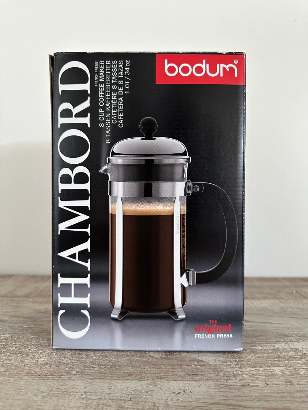 Brand new, box a bit damaged from storage. I was gifted this but I already have another Bodum that I use regularly. Can attest that these work awesome!