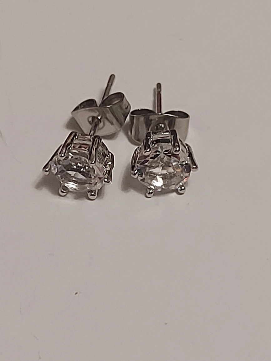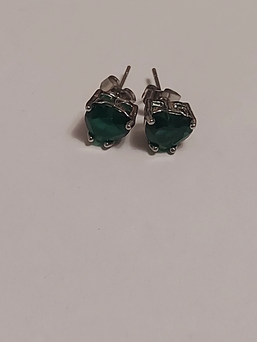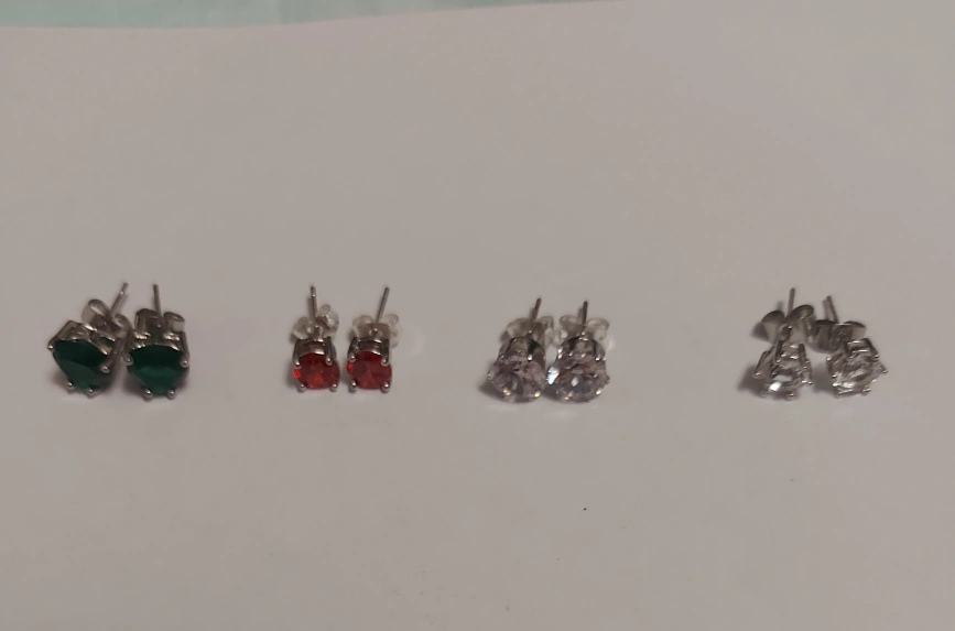 -green hearts, red stone, 2 clear sparkle stone pairs
