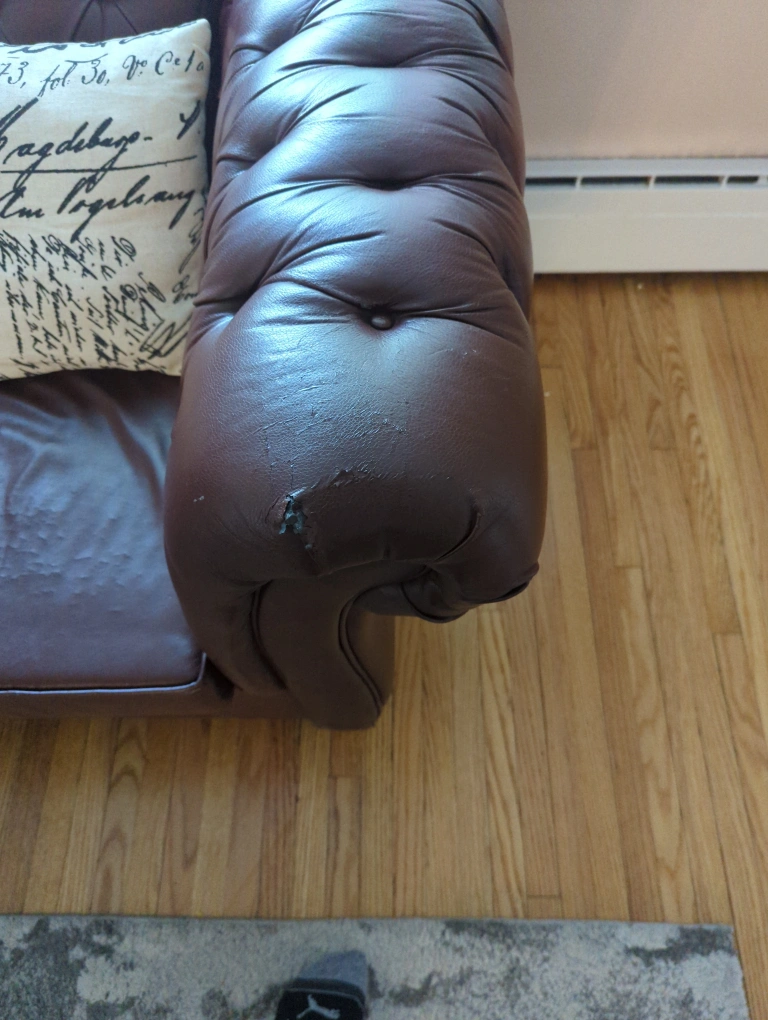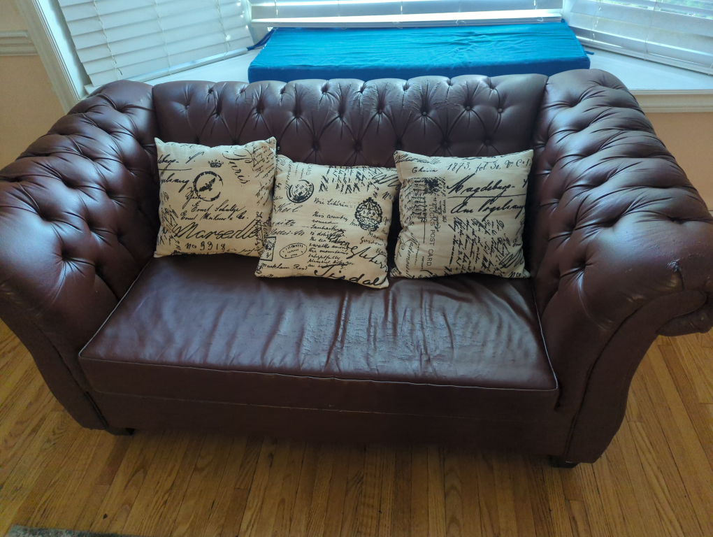 it's our old couch (2 seater) with wear and tear but a solid frame. if interested, you would need to pick it up from my home.