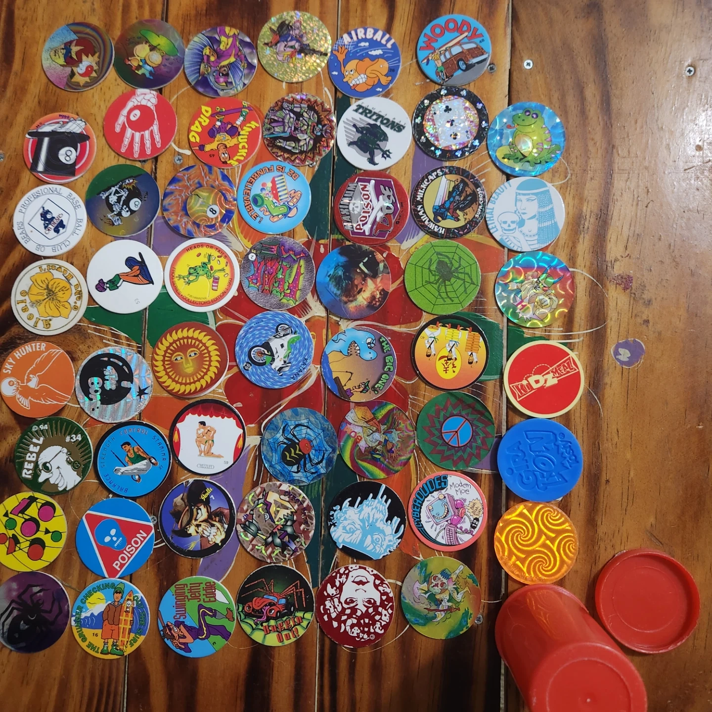 Show all90s Pogs Lot - 56 Milkcaps and 3 Slammer