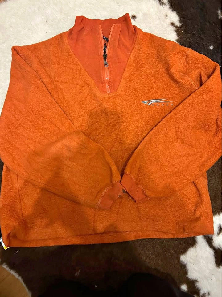 5In good condition. Men’s L/XL. Super cozy. Made in Canada. Small stain near left wrist.