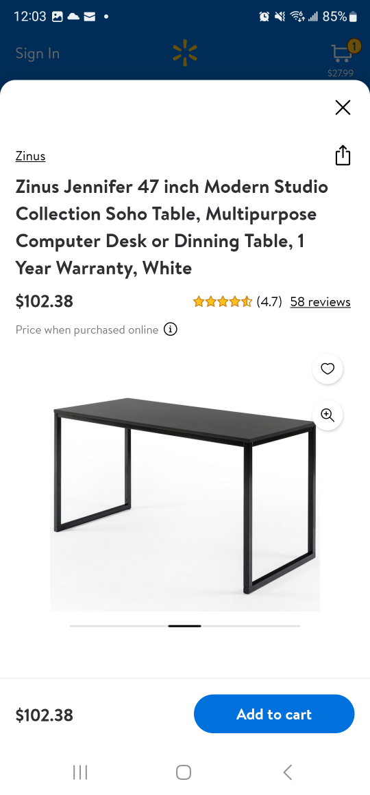 1 / 41 / 4Buy & SellTableTable$80Zinus Jennifer 47 inch Modern Studio Collection Soho Table, Multipurpose Computer Desk or Dinning Table,ConditionNewWHERE TO MEETCheck LocationView MapSELLERsomia RaeesBrampton E553 reviews17 chats·14 favorites·871 viewsSEND CHAT TO SELLERHi somia Raees! I’m interested in your listing.Hi somia Raees! I’m interested in your listing.Get the Karrot app to chatSign In to chat