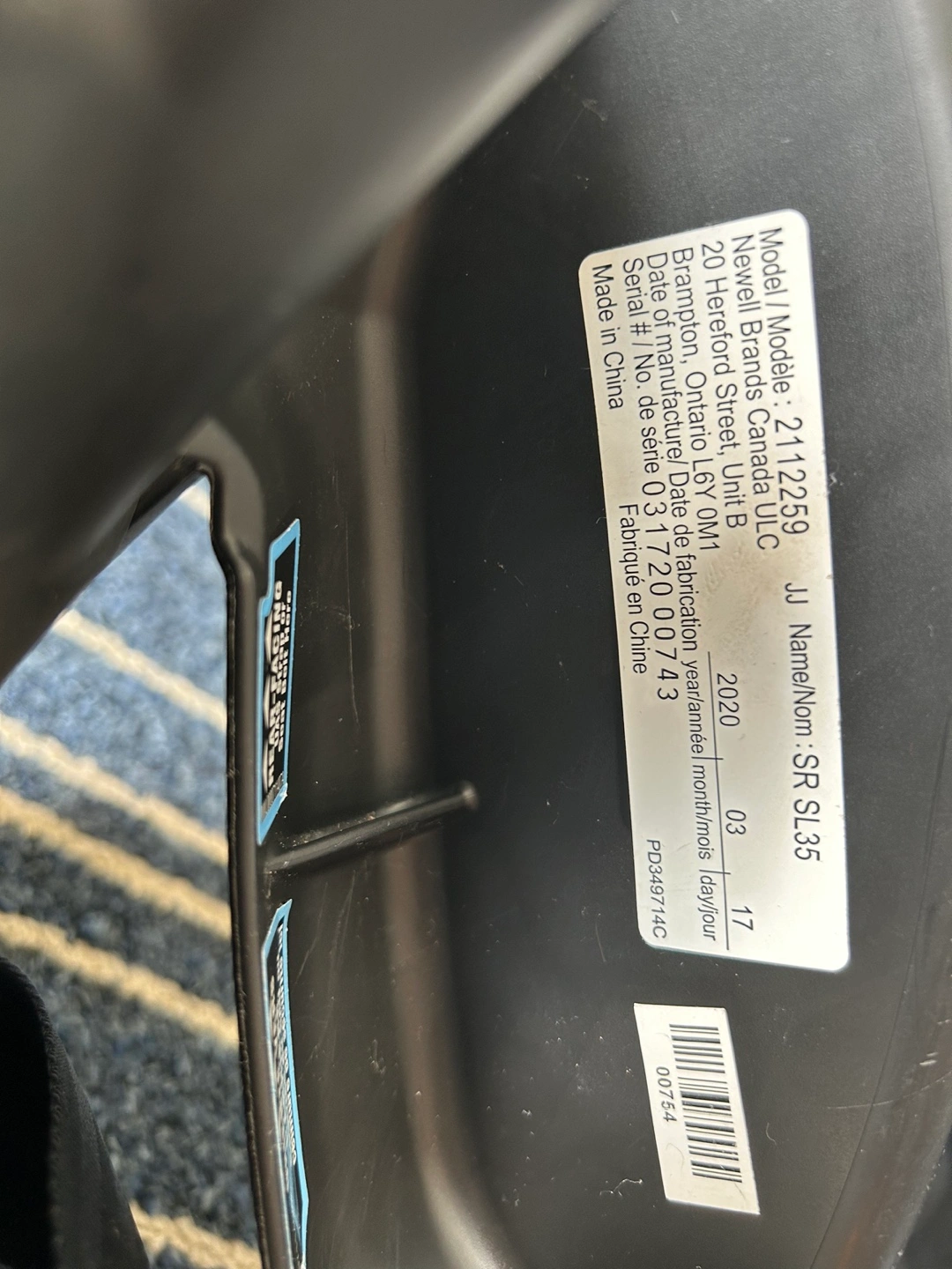 - Washed infant car seat