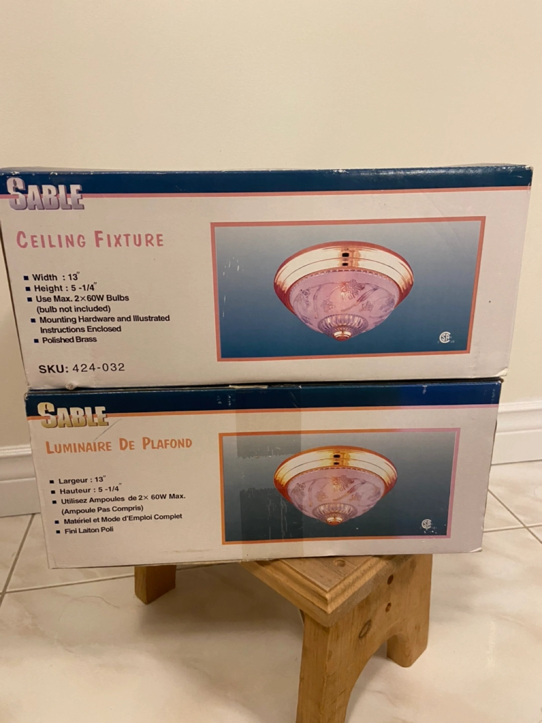 Brand new ceiling light fixtures purchased from Home Depot many years ago. I never ended up installing all of them in our house so we have 2 leftover. Second photo is what it looks like installed for your reference. Please let me know if you have any questions