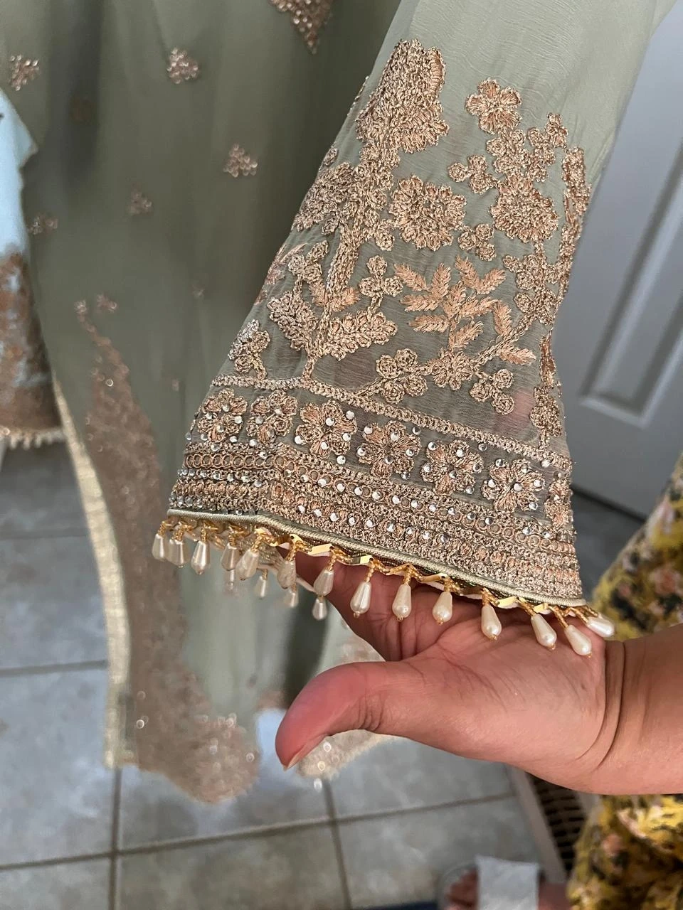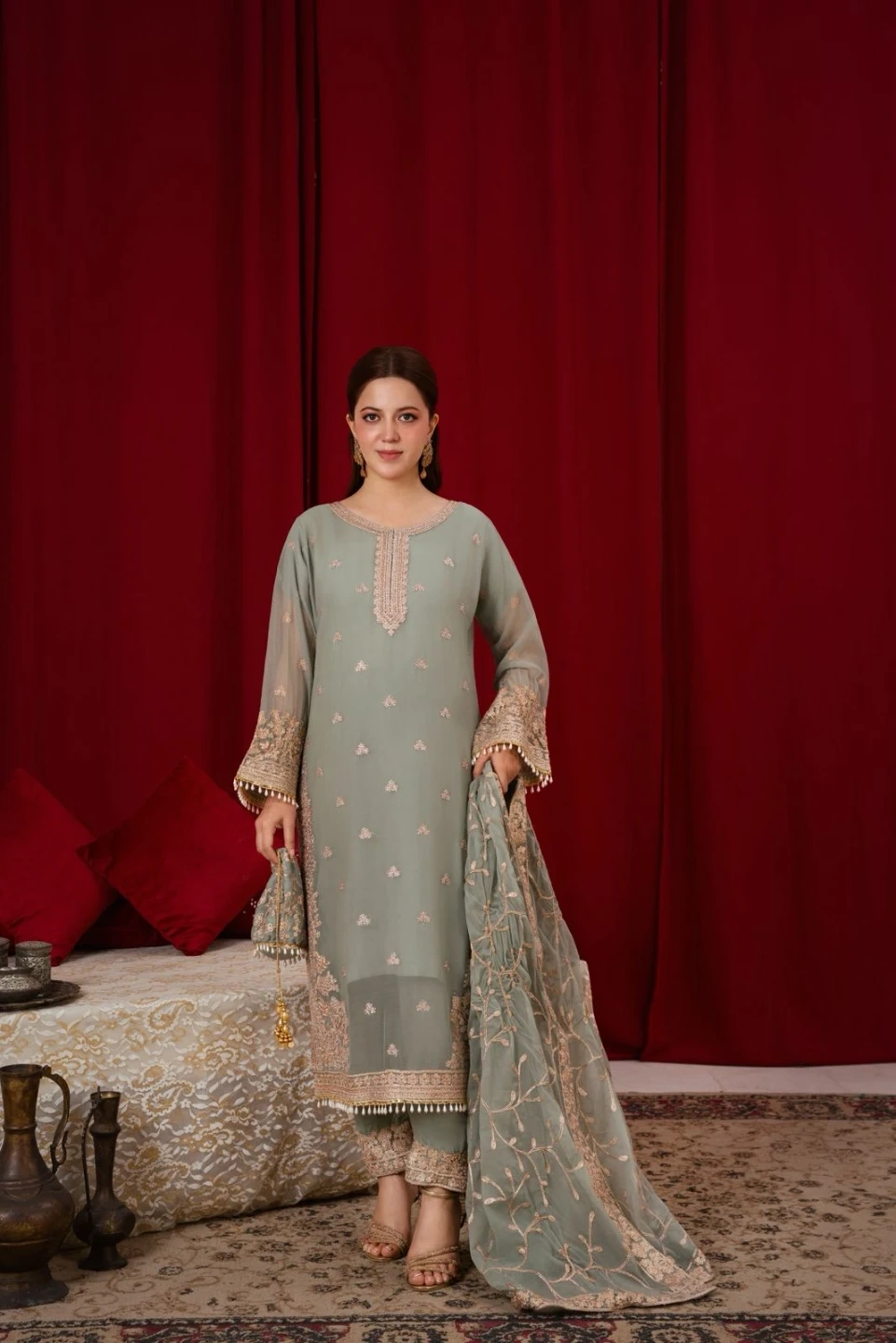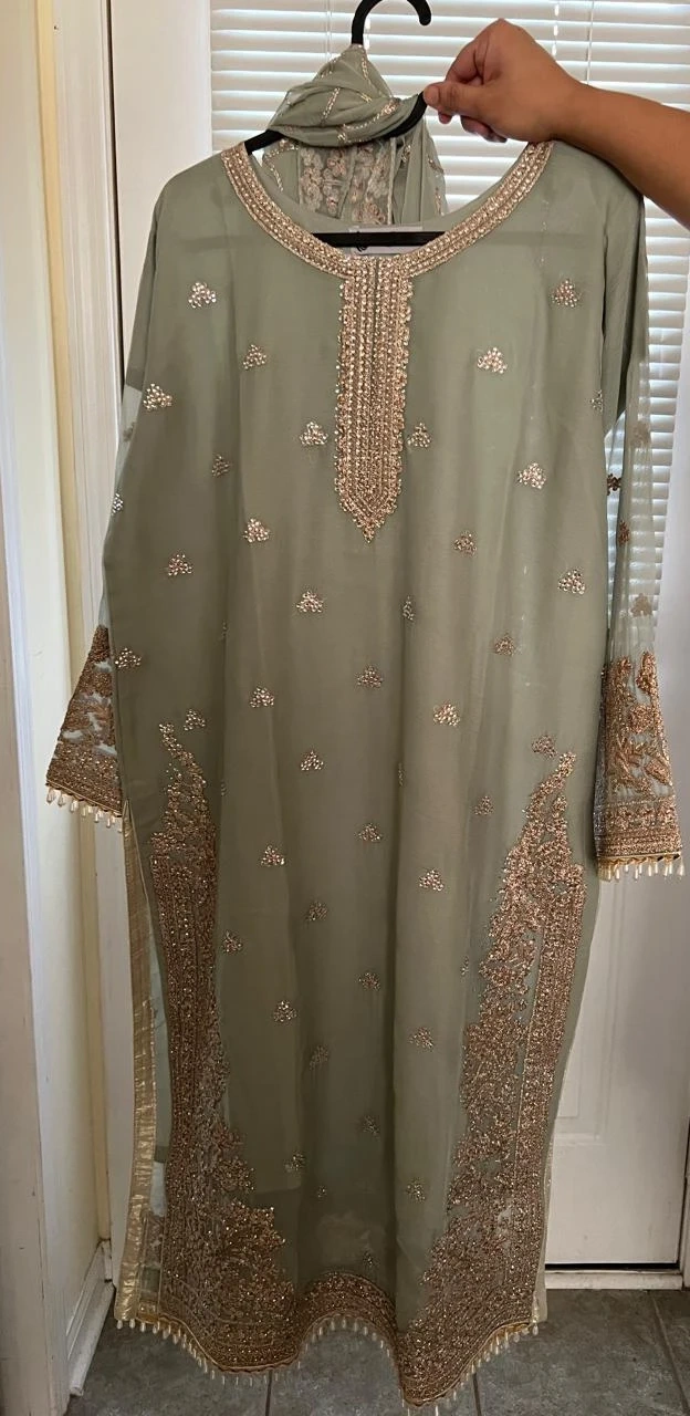 Beautiful mint green 4 pcs suit with Embroidery and stones work