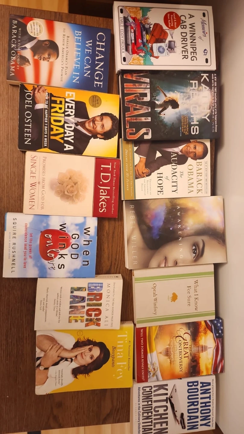 Genres range from political to inspirational and fiction. These books are great for casual reading or expanding your personal library.