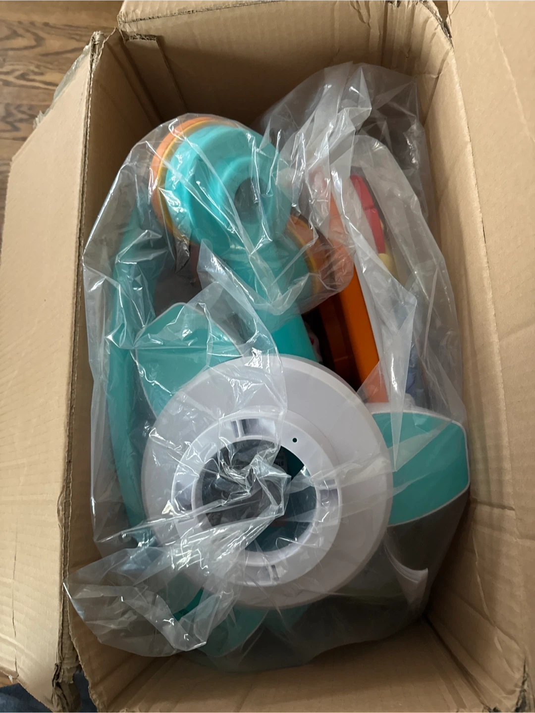 This 3-in-1 Stationary Activity Center is a versatile play set that converts from a stationary activity station to a walk around and play table. It features adjustable seat heights and various interactive toys. Condition is new in box all parts checked and working. Batteries not included. Pick up in Victoria Village.