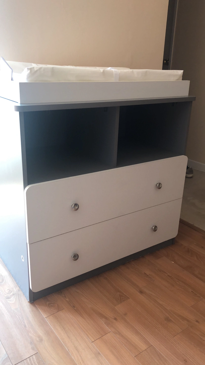 Lightly used baby change table, removable top and two drawer dresser.