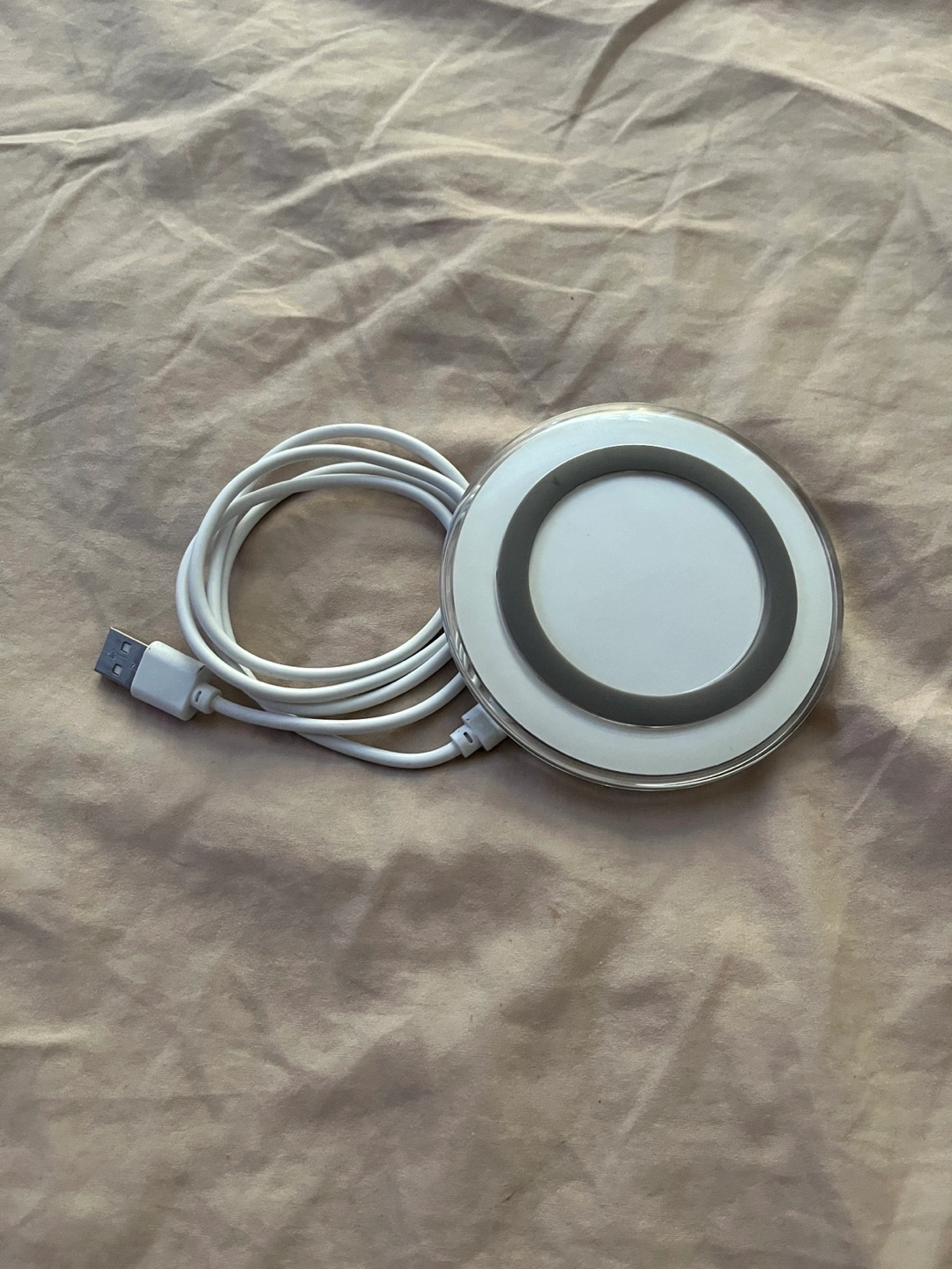 This wireless phone charger is ideal. No cable necessary just place your phone on top how to charge.