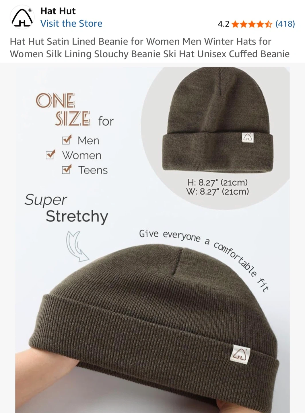 This Hat Hut beanie is satin lined to protect and shine your hair. It's unisex and super stretchy for a comfortable fit. The hat is one size for men, women, and teens. It's designed for everyone to share the fashion!