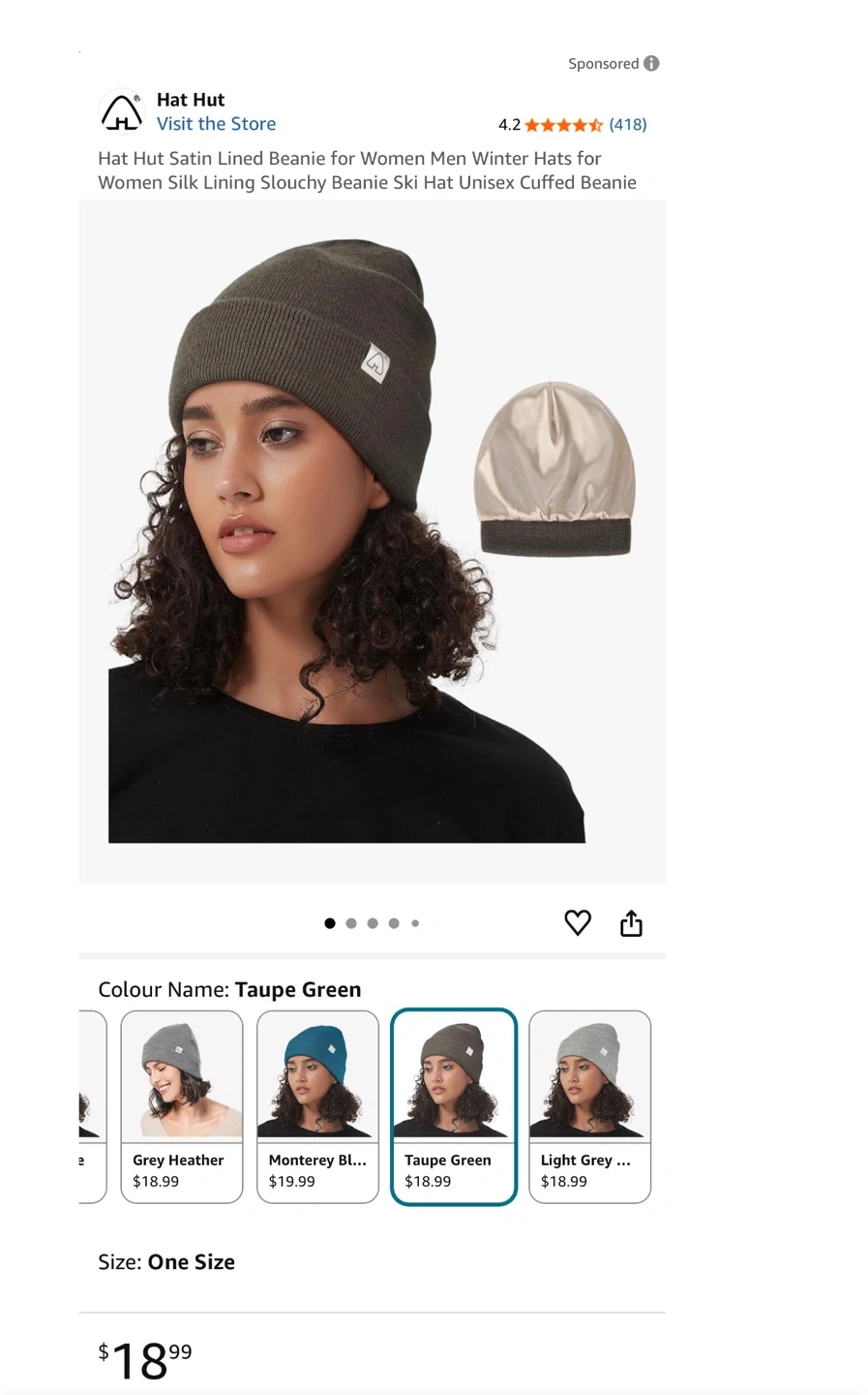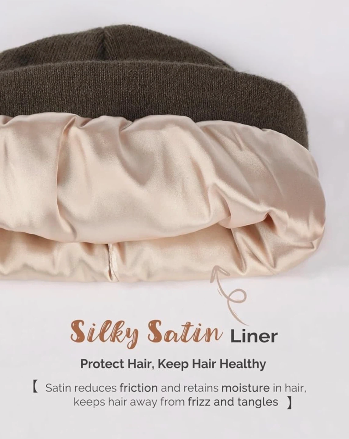 Winter Satin Lined Beanie Hat - Taupe Green π₯