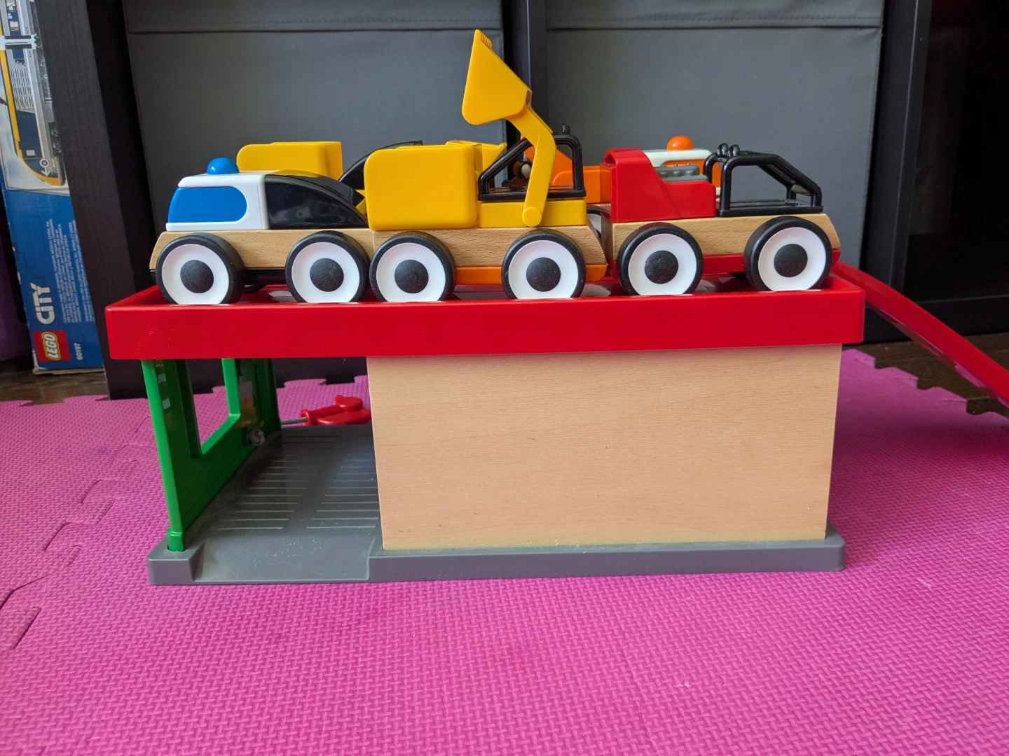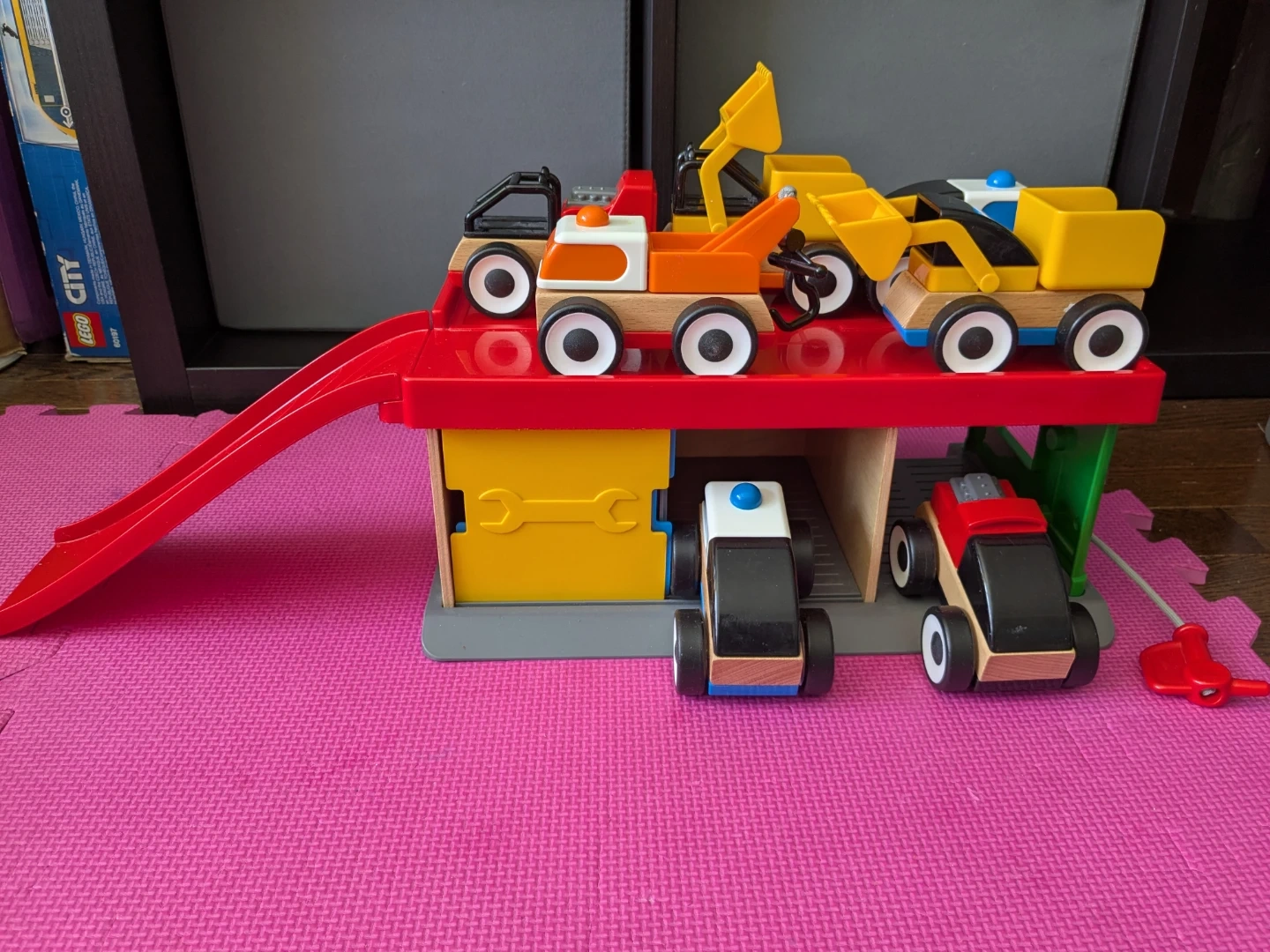 IKEA Wooden Toy Construction Vehicles and Garage Set