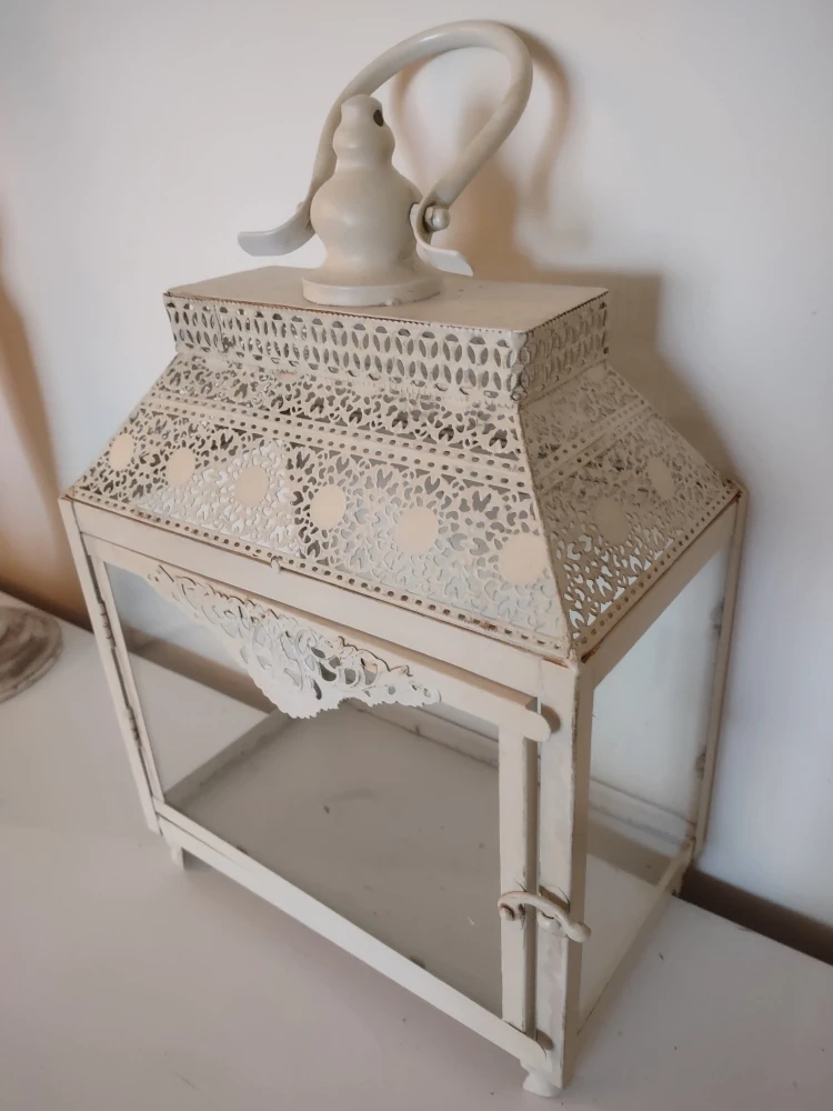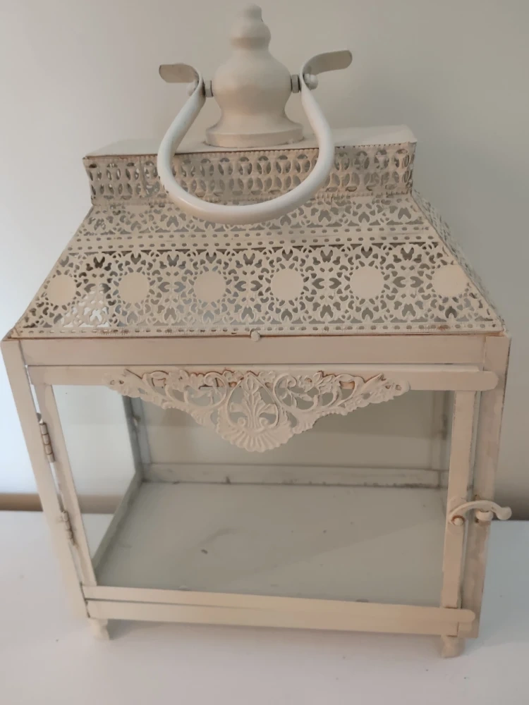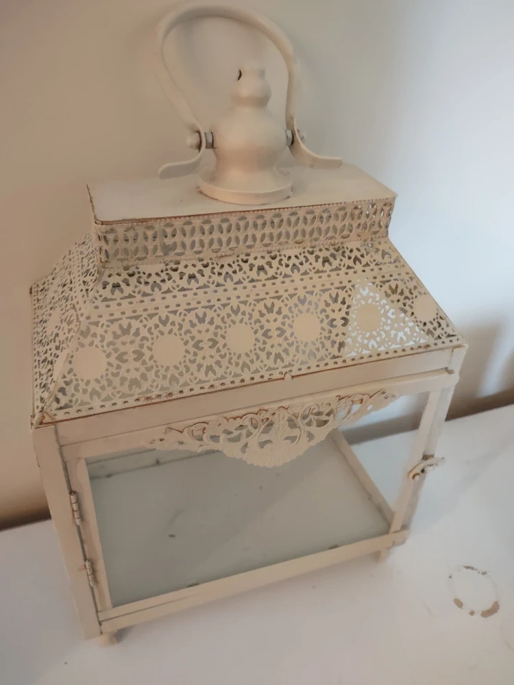 Pretty and decorative glass box with door that opens with latch (as seen in photos) You can place candles or a string of lights inside to brighten the glass box, once lit, it gives a pretty atmosphere to any space/room in your home.