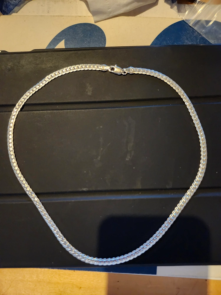 Selling a simple 925 sterling silver chain necklace. It's in new condition and ready for a new home! It would look great with any outfit. 20 inches long. 3mm. weight .629 oz