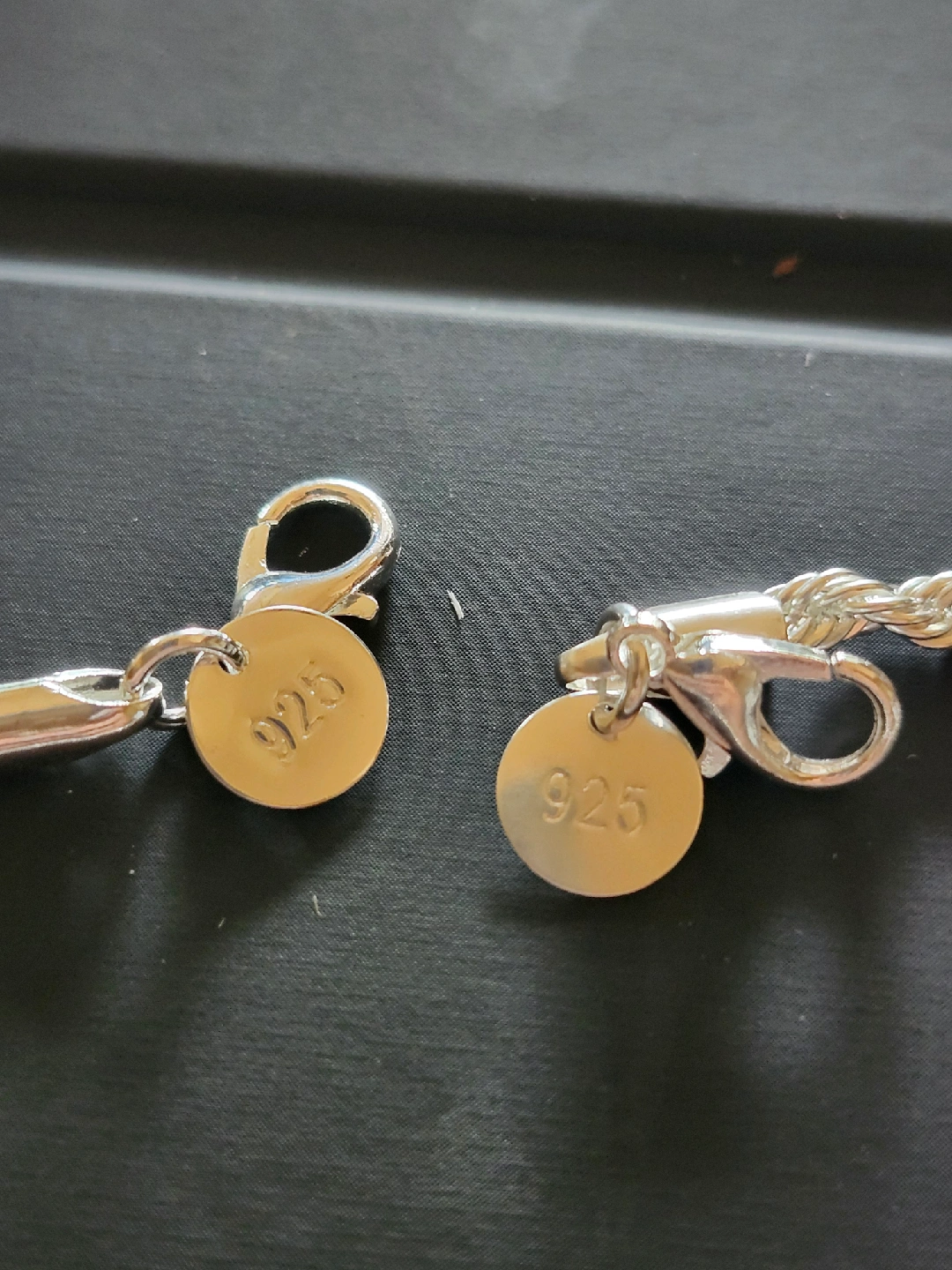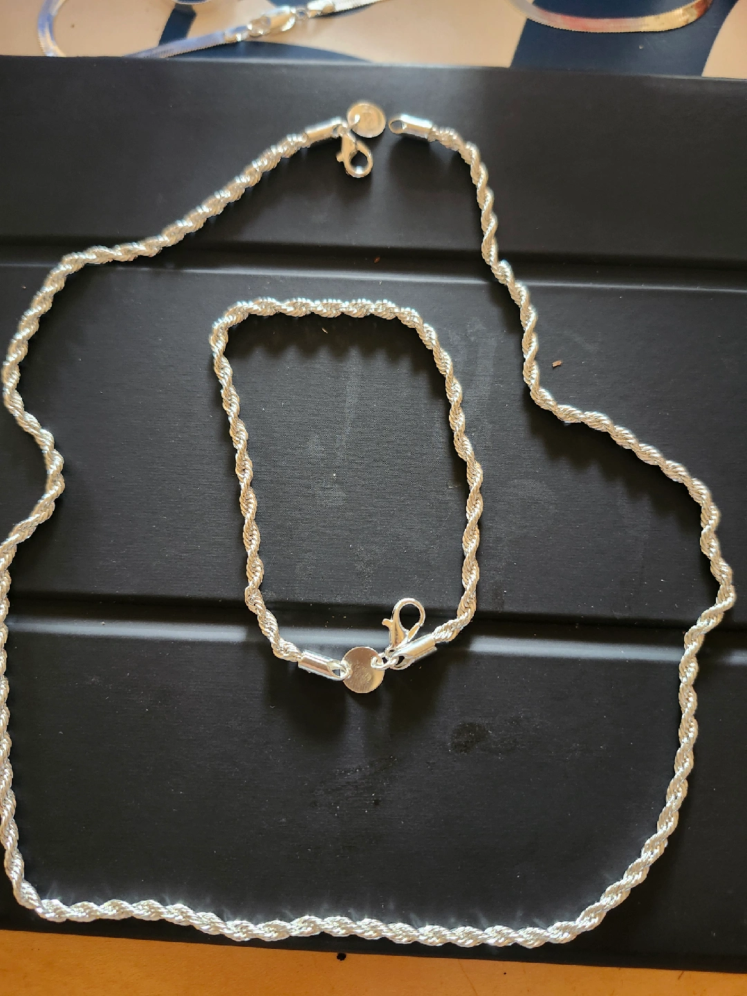 Sterling Silver 925 Rope Chain & Bracelet Set