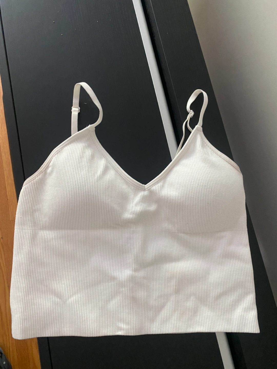 White Stretchy crop top with adjustable straps and paddings from forever 21