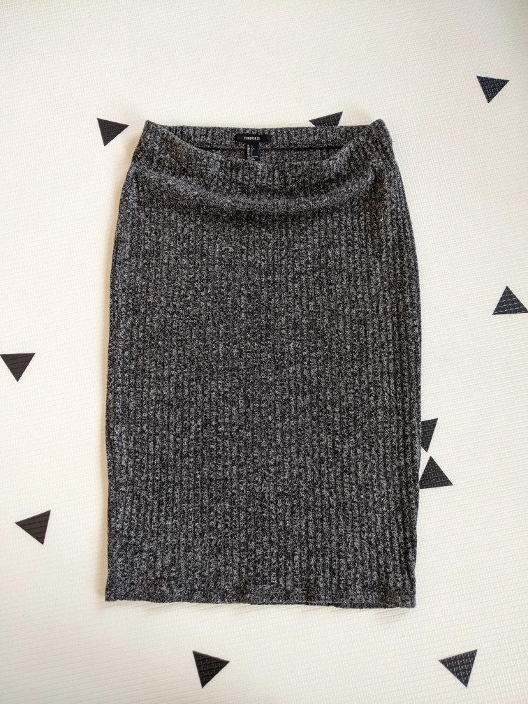 Brand New Forever 21 Grey Knit Salt n' Pepper Midi Skirt