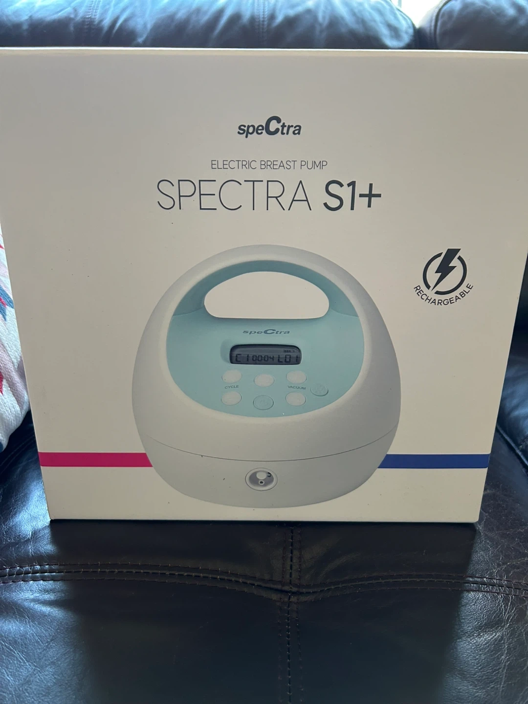Spectra S1+ electric breast pump. It's rechargeable and comes in white. This pump is suitable for any parent needing a reliable breast pump.