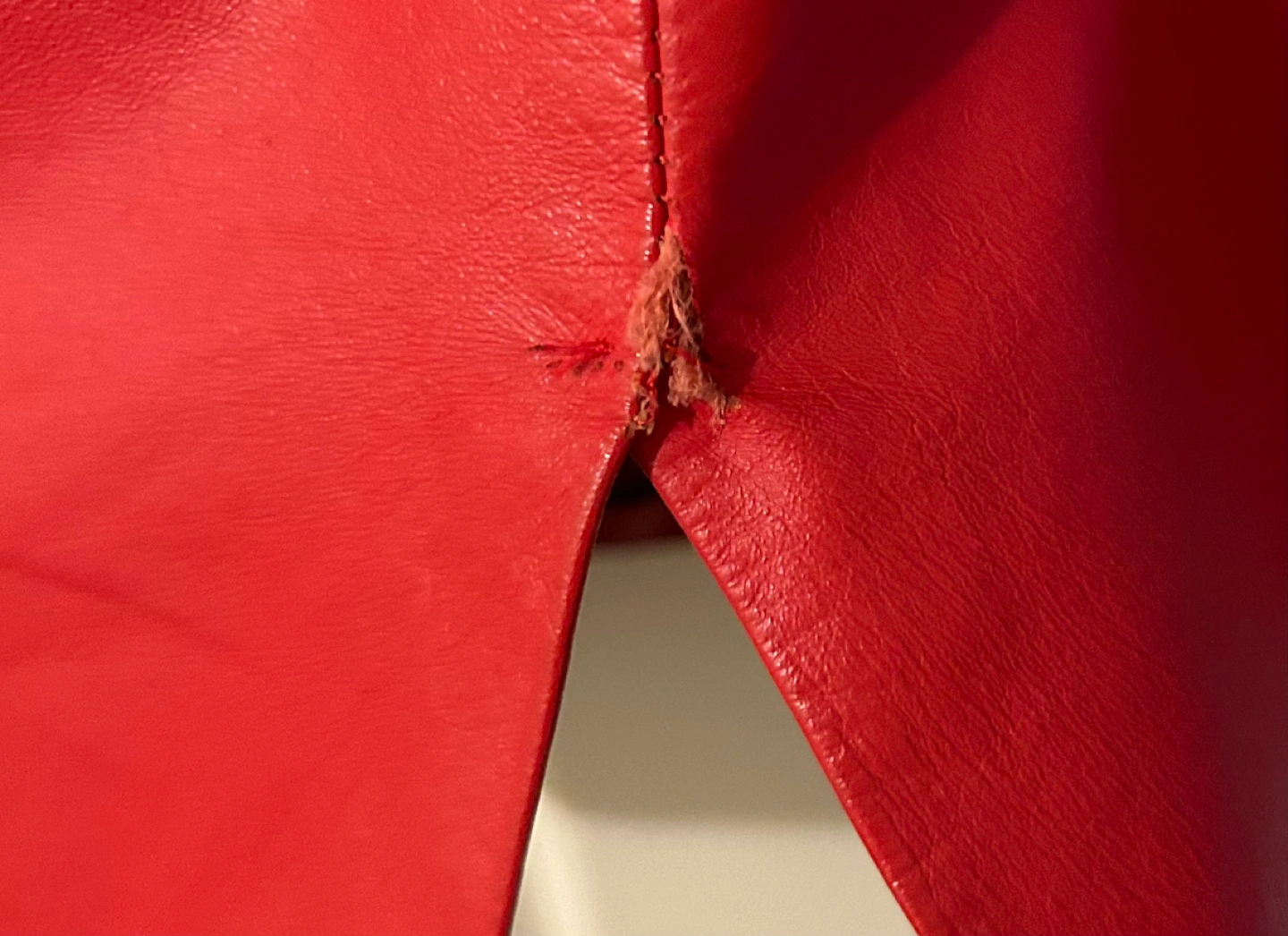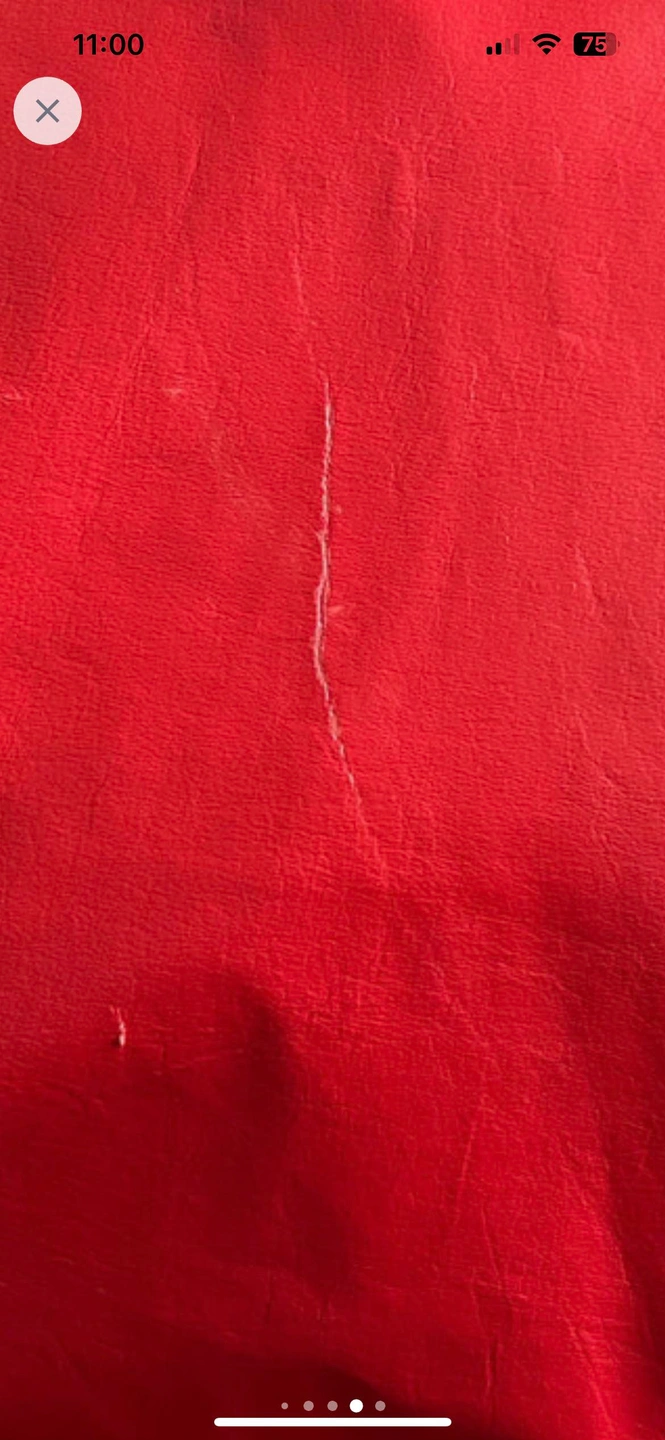 Has slit at the back and a small area to sew/fix. There is a scratch mark on it also. However, is it even noticeable? U be the judge and see pics. 💃