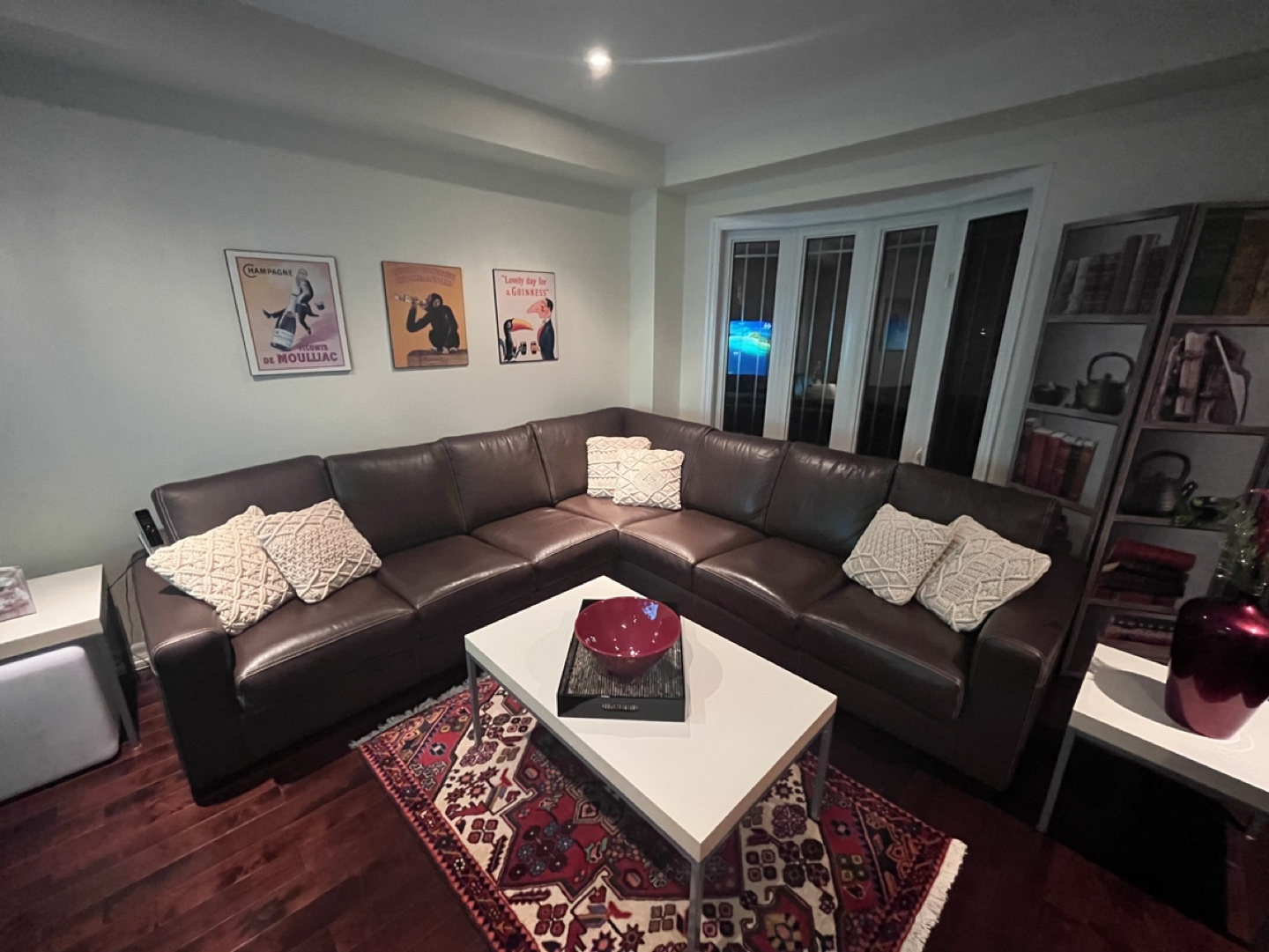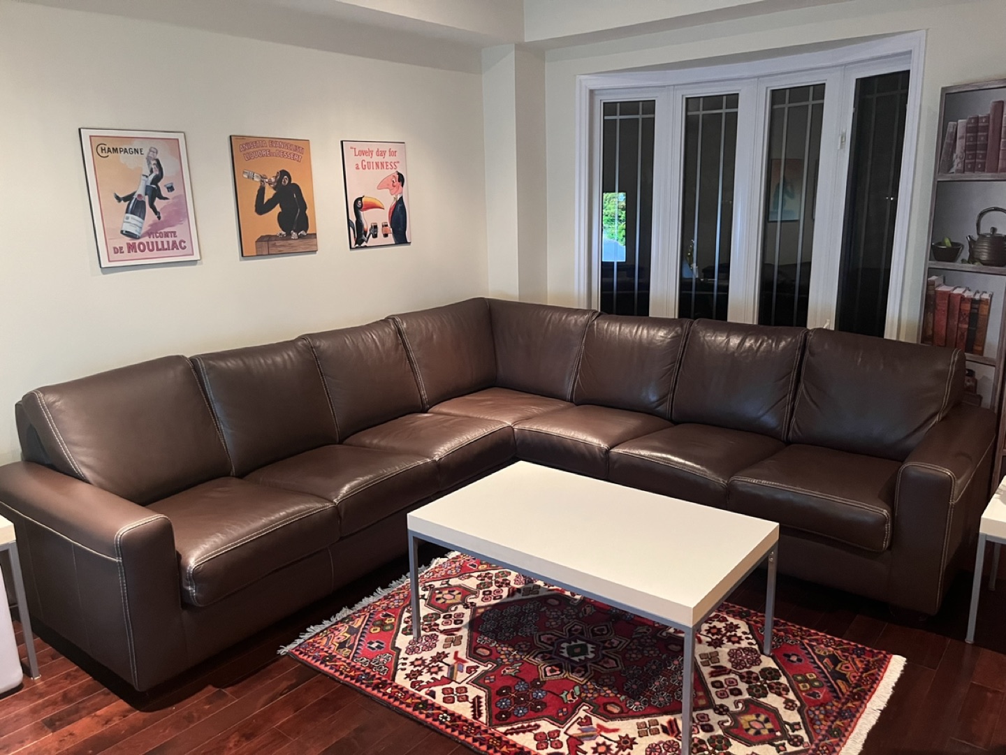 Extra-large sectional sofa in dark brown leather. In great condition, no creases. Extremely comfy. Retail price: $4000
