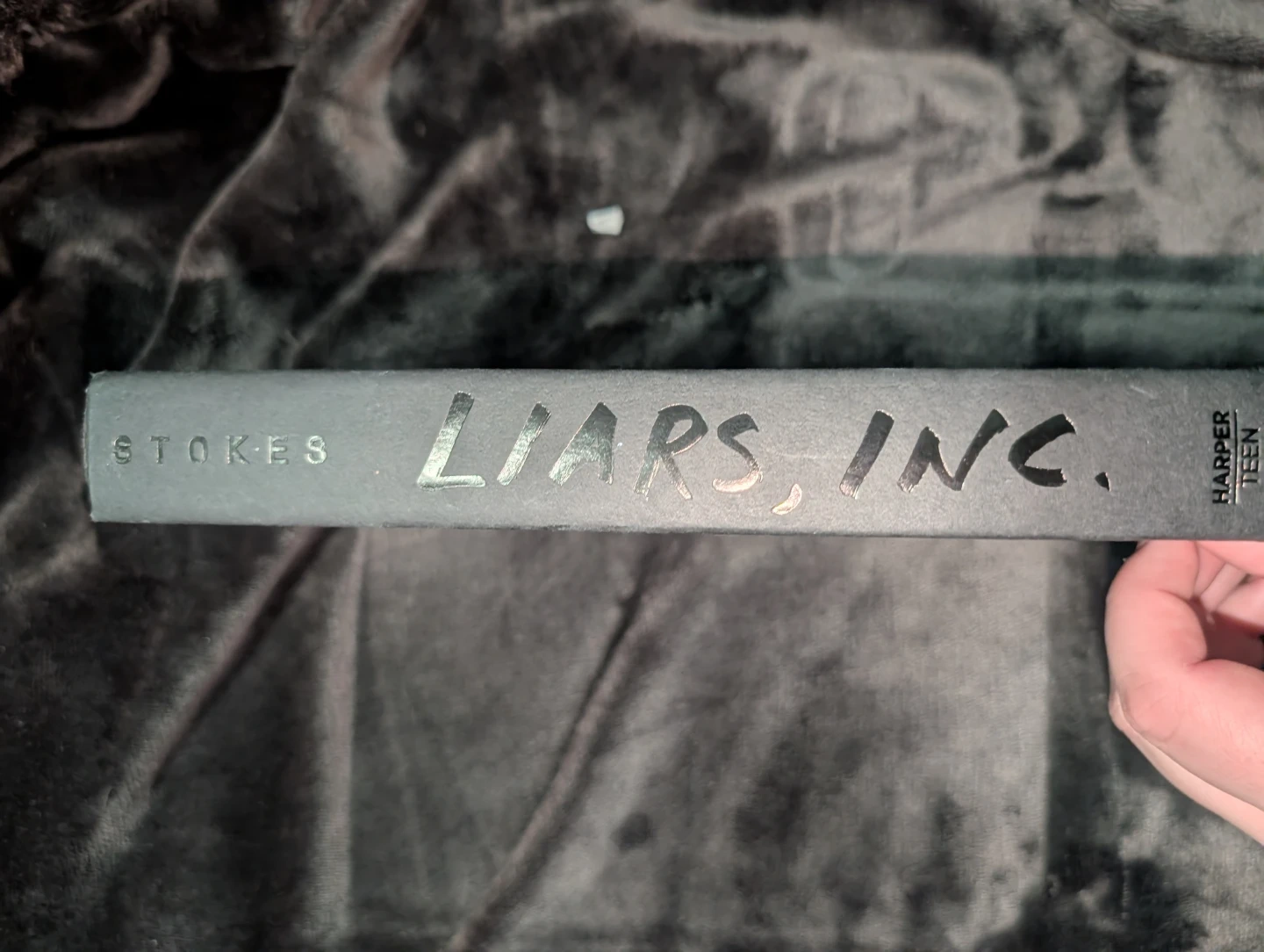 This hardcover book is titled Liars, Inc. It's written by Stokes and published by HarperTeen.