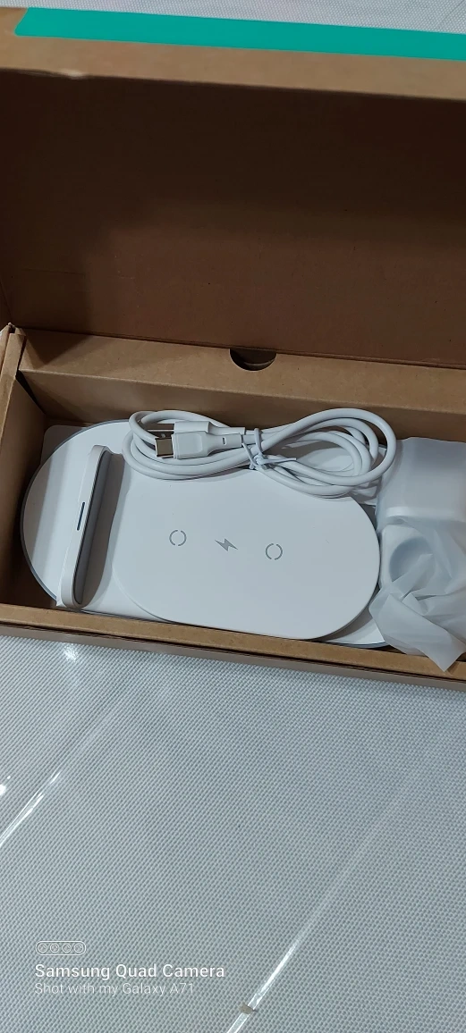 Brand new Wireless charging station comes with 2 years warranty. Advsnce Gan power technology and charge 3 all devices flawlessly. compatible with all Qi devices and comes with a USB charging cable.