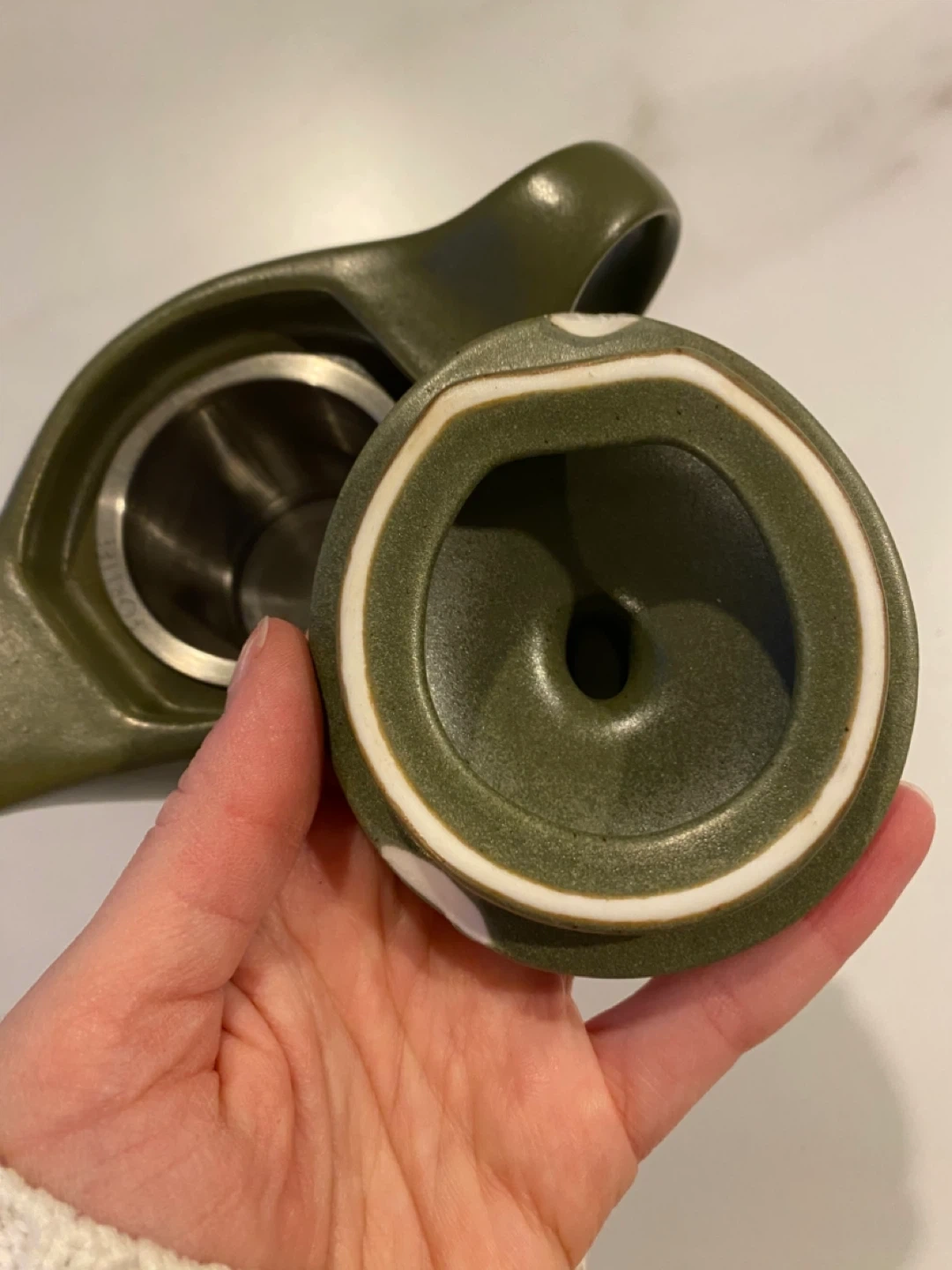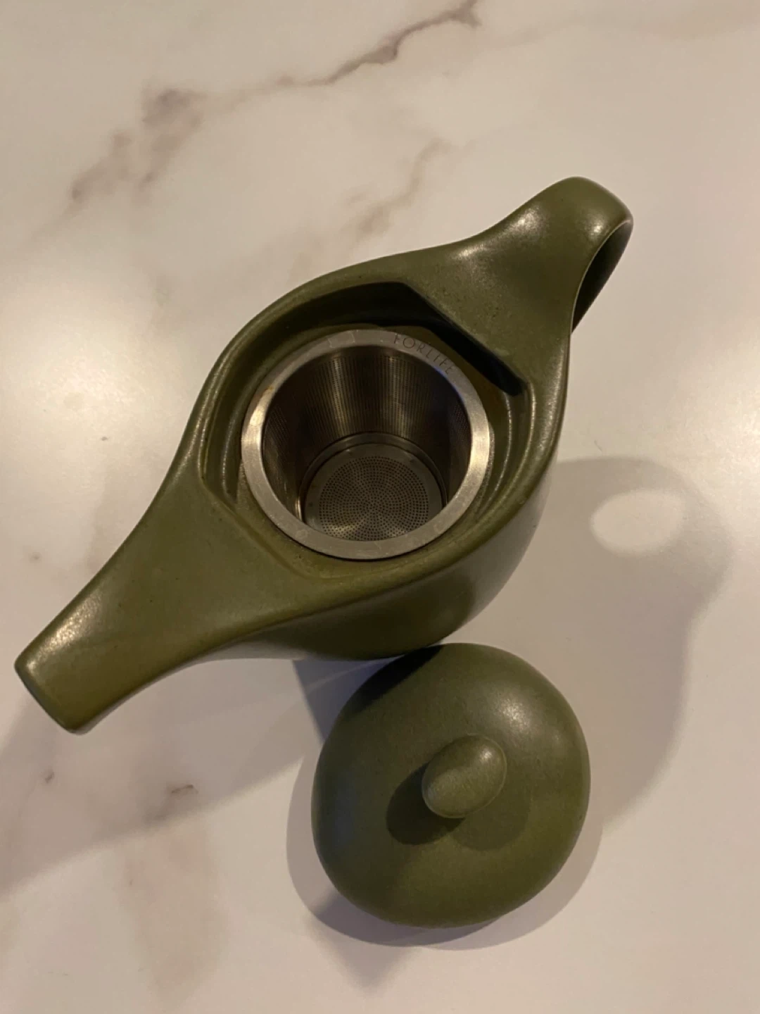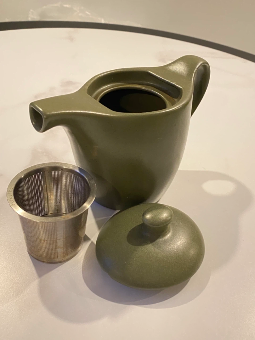 Porcelain FORLIFE teapot. Olive green color from their classic collection. Comes with lid and metal tea infuser. Great for loose leaf tea!