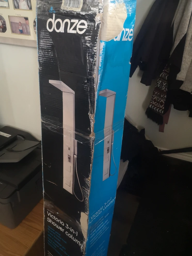 New lower price. Brand new Danze Victoria 3-in-1 shower column, still in box. Includes all hardware. Box shows some wear.