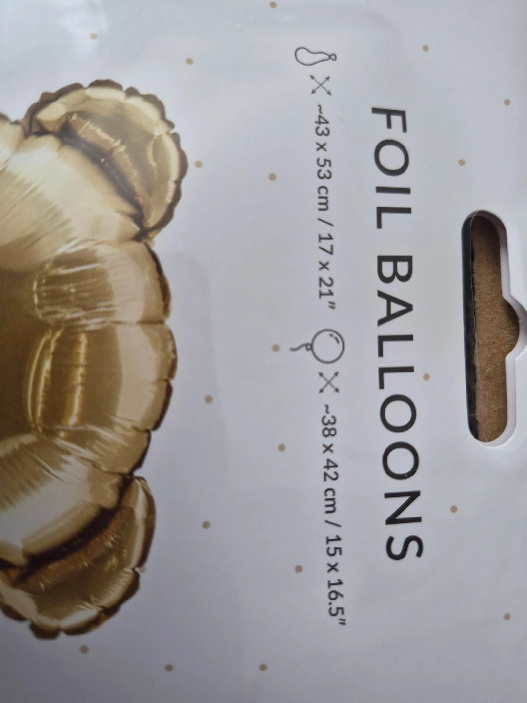 Gold foil balloon in a cute teddy bear shape. Uninflated. It measures approximately 43 x 53 cm / 17 x 21 inches when inflated. Perfect for birthdays or baby showers!
