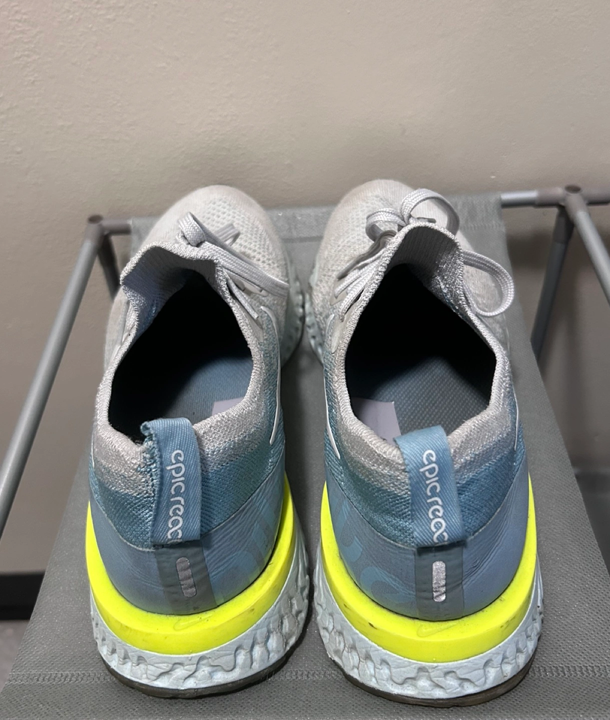 Size 9 Nike women’s running/ walking shoes in platinum blue colour. Extremely comfortable style. Used but in good condition.