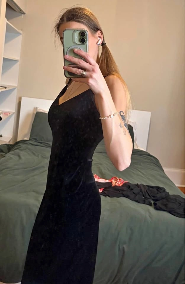 Little, black, velvet dress! Size small, from “The Vintage Shop”