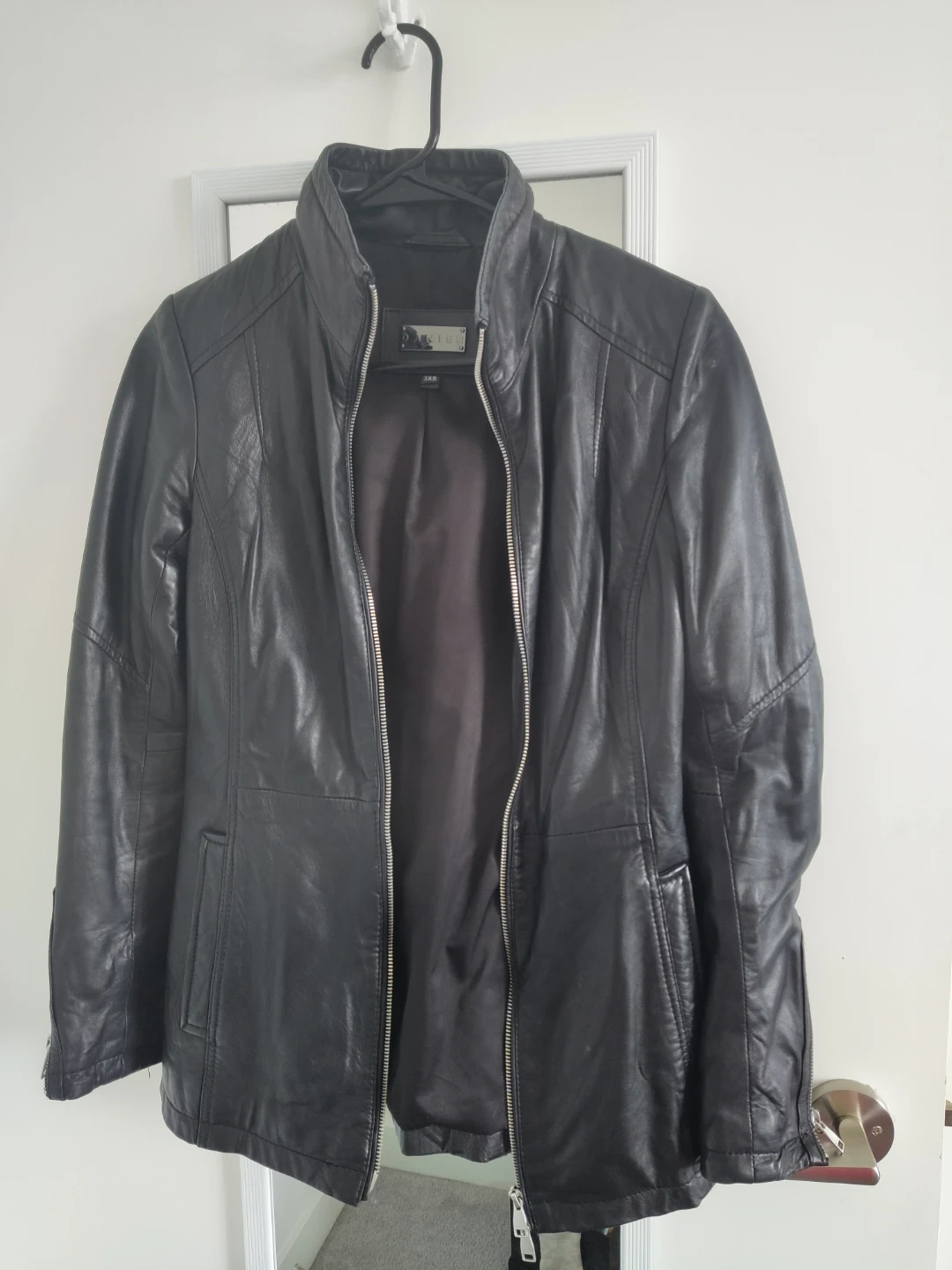 Selling a stylish Danier leather jacket in size 3XS. It's a sleek black colour and in great condition. Perfect for adding a touch of edge to any outfit!