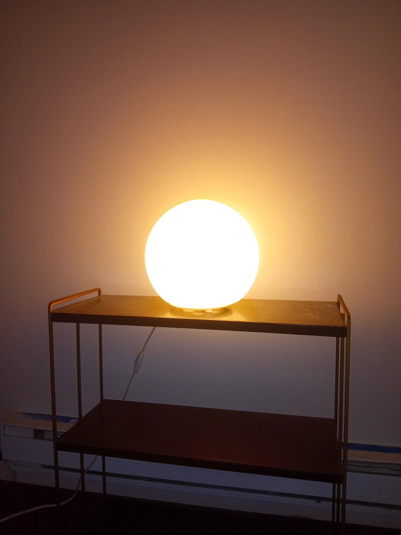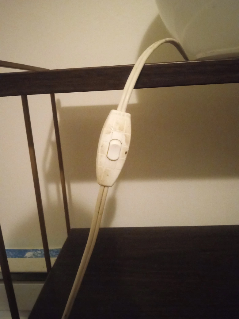stands approximately 10 inches tall with a 6.5 foot cord. classic switch on it.