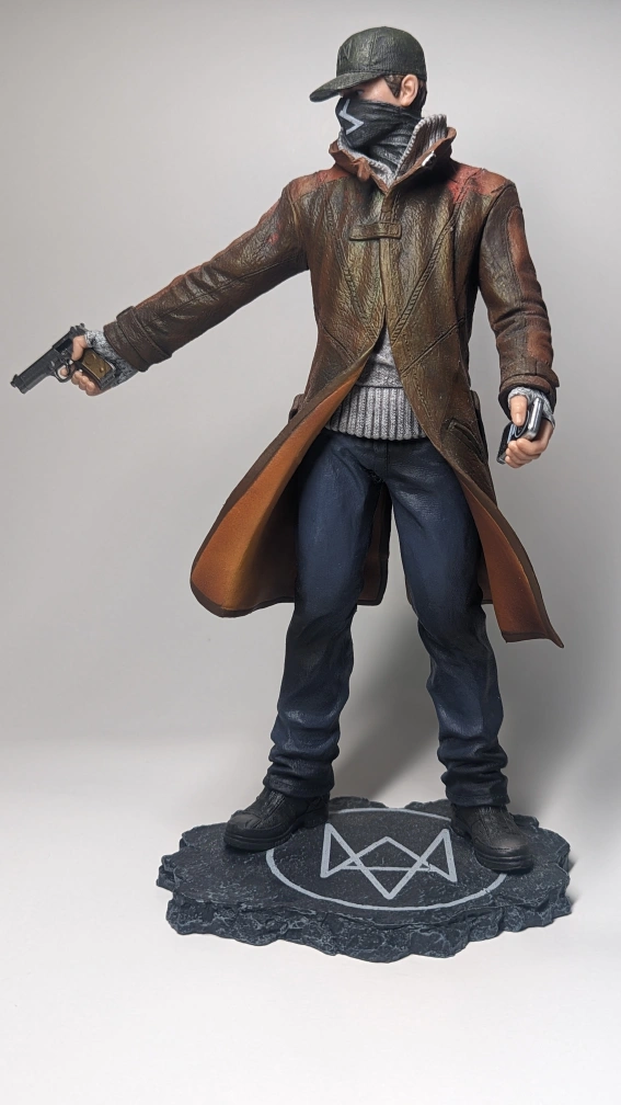 Official Ubisoft statue of Aiden Pearce from Watch Dogs. It was sitting in my display case for a few years before I stored it away. The gun is removable.