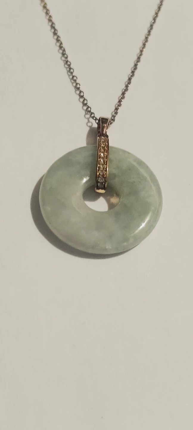 New !!! Gorgeous Gold Overlay Sterling Silver 925 Stamped Jade and White Topaz Small Gemstones Pendant with Gold Overlay Sterling Silver 925 Necklace. The necklace is 18" long and the pendant is 1" in diameter. New !! ALL MY PRICES ARE NEGOTIABLE !!