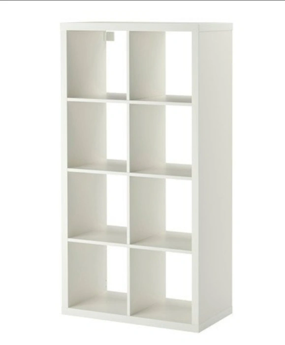 Kalax type storage shelf on heavy duty wheels. Cherry wood color. Super solid.
