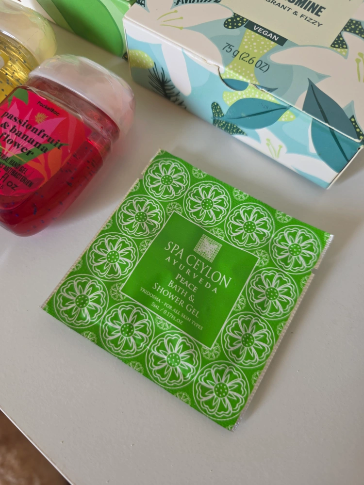 One Spa Ceylon Ayurveda Peace Bath & Shower Gel sachet.