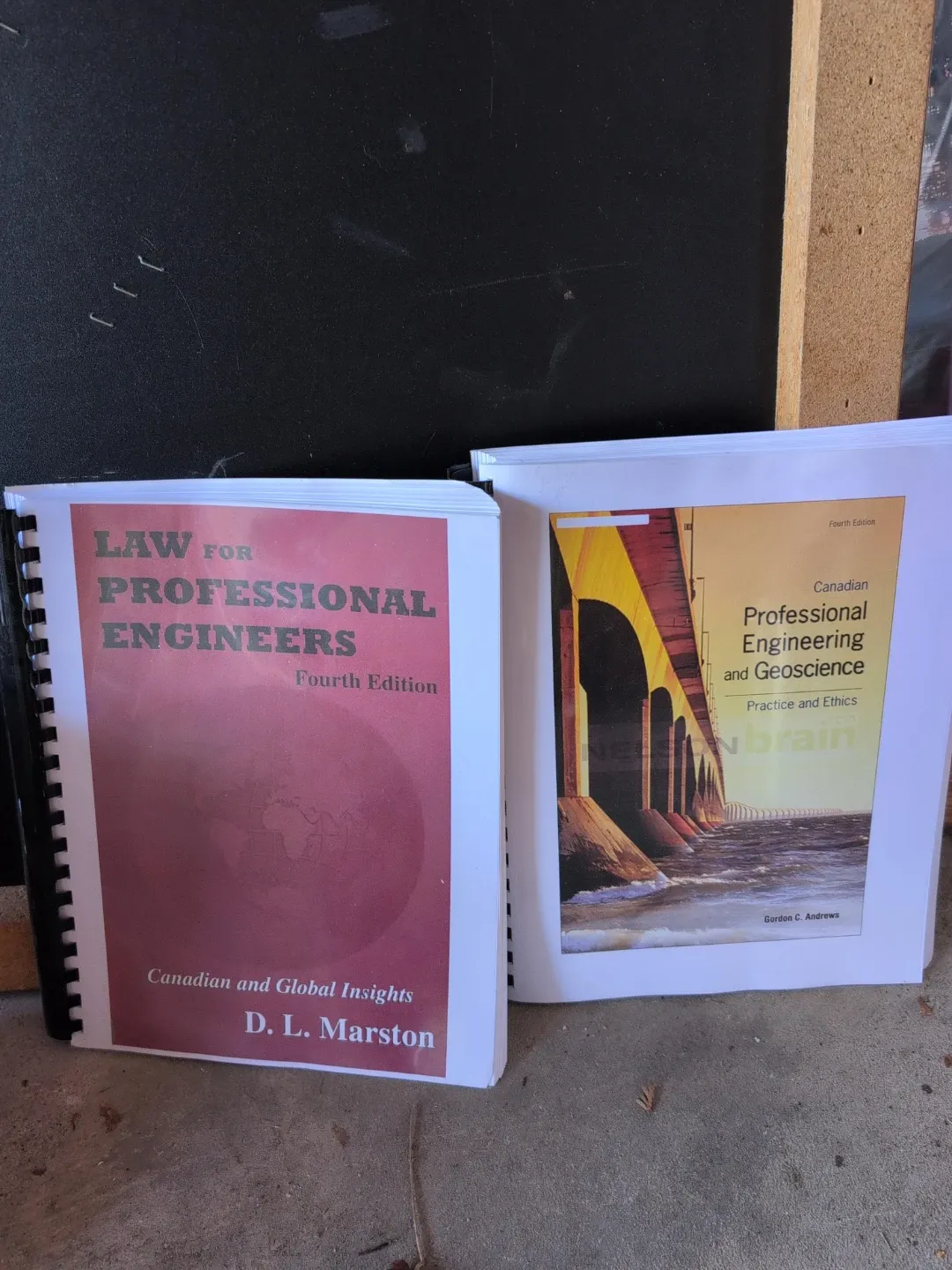 Two fourth edition textbooks for professional engineers and geoscientists. Includes 'Law for Professional Engineers' by D. L. Marston and 'Canadian Professional Engineering and Geoscience' by Gordon C. Andrews. These cover Canadian and global insights and practice and ethics.