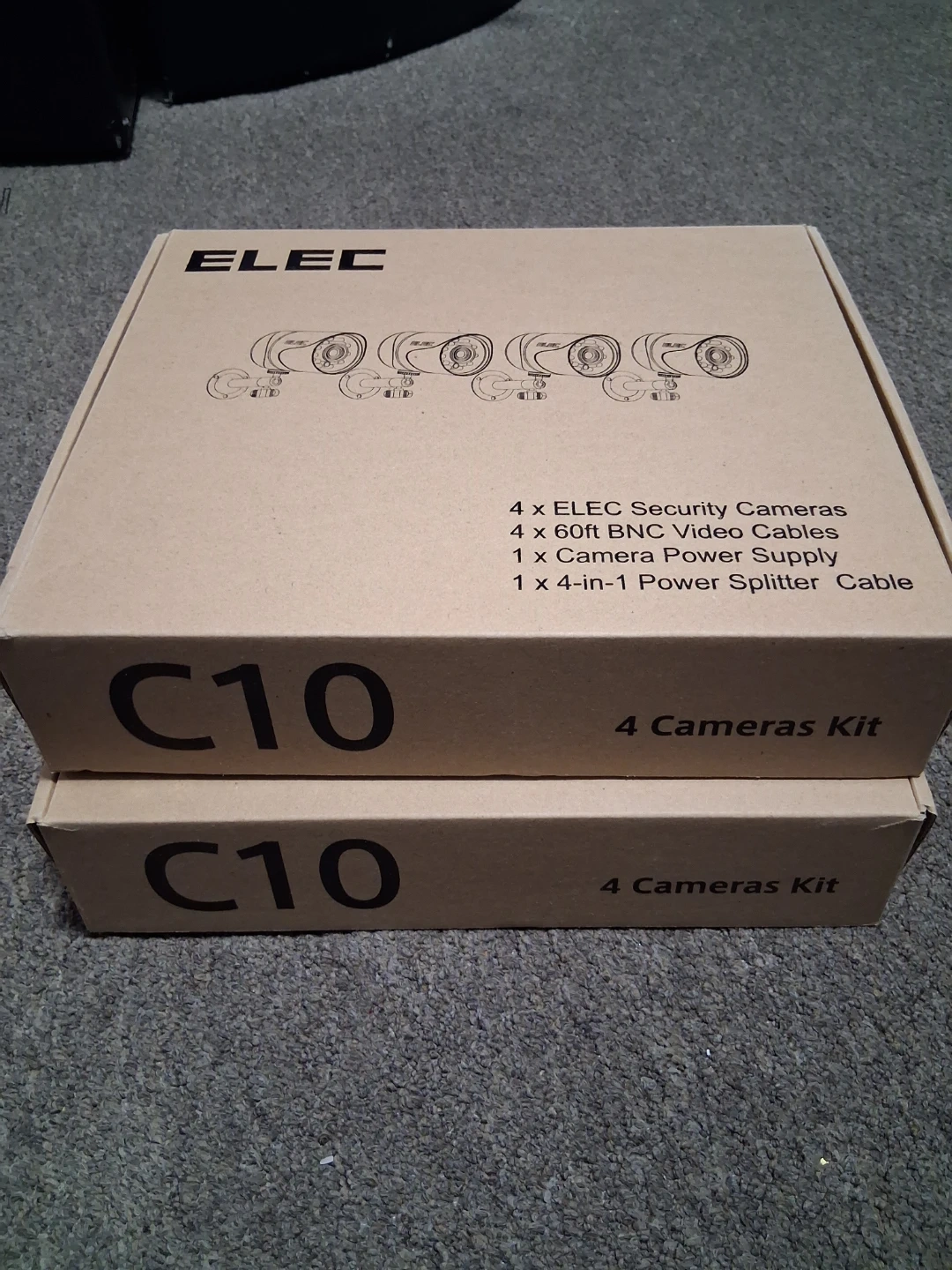 This ELEC e-Cloud Digital Video Recorder system comes with an 8-channel DVR and 4 security cameras. It includes 4 x 60ft BNC video cables, 1 x camera power supply, and 1 x 4-in-1 power splitter cable. Also included is a power supply for the DVR and a mouse. This kit's ready for installation!