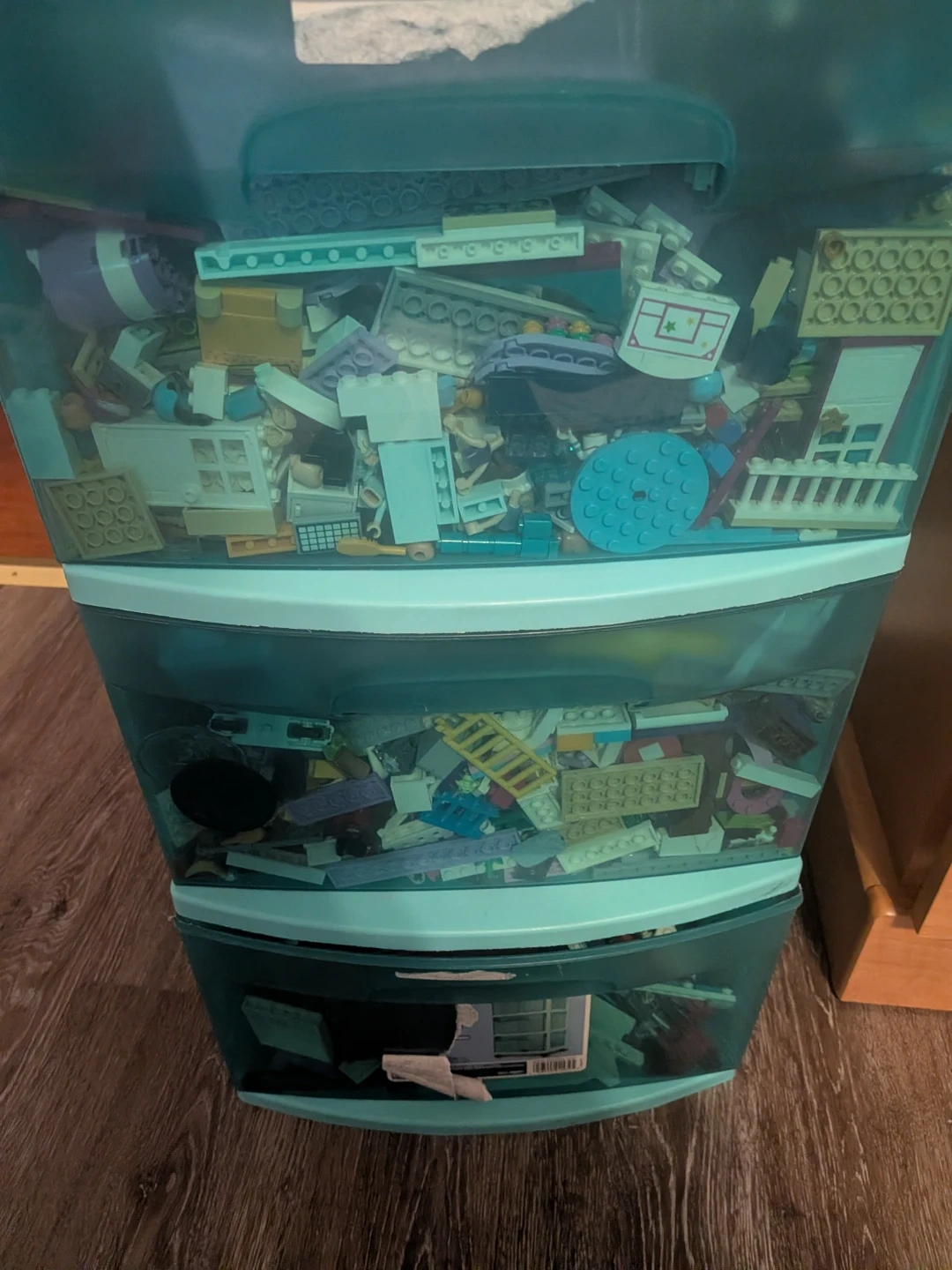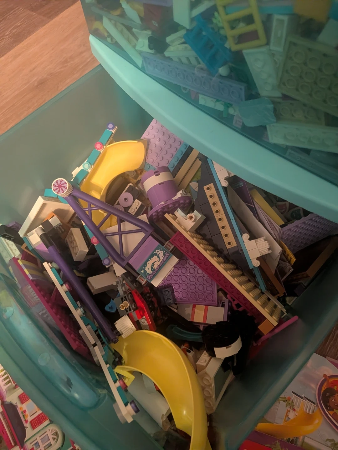 This is a large mixed collection with multiple bigger builds (house, school, vehicles, accessories, mini-dolls, baseplates, etc.). Everything has been stored indoors in a clean home.