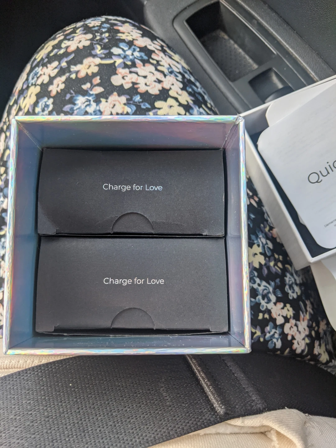 This is a pair of Bond Touch bracelets, one white and one black, designed to keep you connected. Each bracelet comes with its own charging module and includes a quick start guide. They are great for couples to stay in touch when apart!