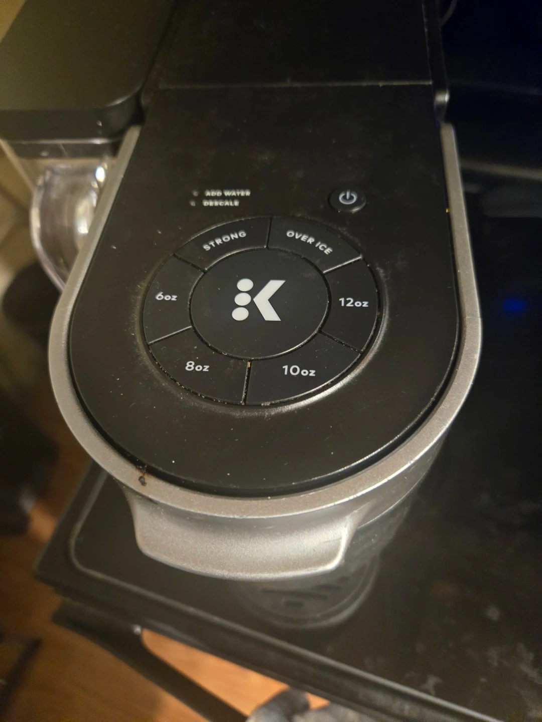 Keurig K-Mini Plus single-serve coffee maker. Brews 6oz, 8oz, 10oz, or 12oz cups. It's compact and great for small spaces. Includes strong brew and over ice options.