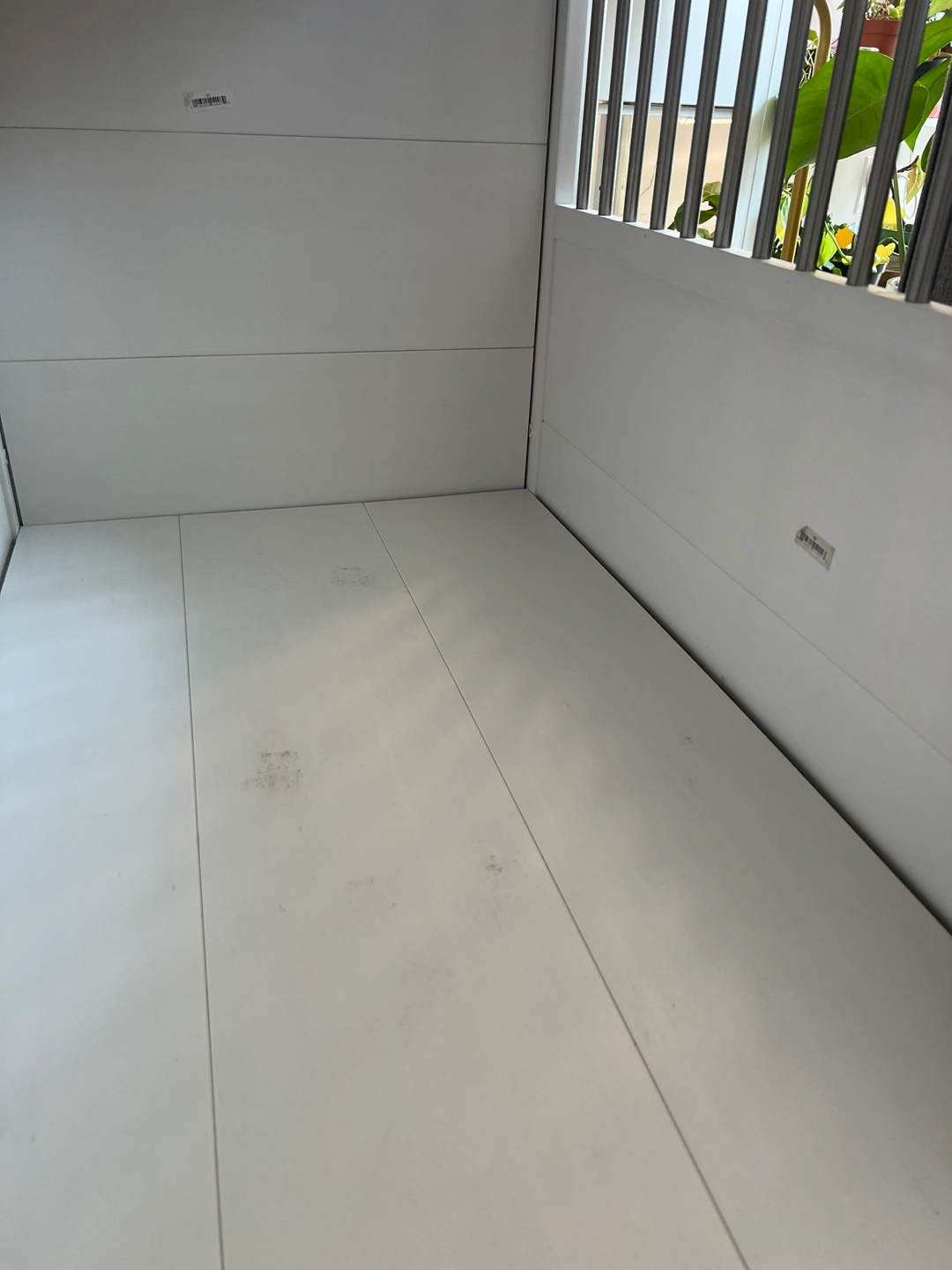 My dog barely used it, it was mostly just for storing his toys. Still in pretty good condition. It’s really eye-catching and I’ve gotten many compliments on this crate.