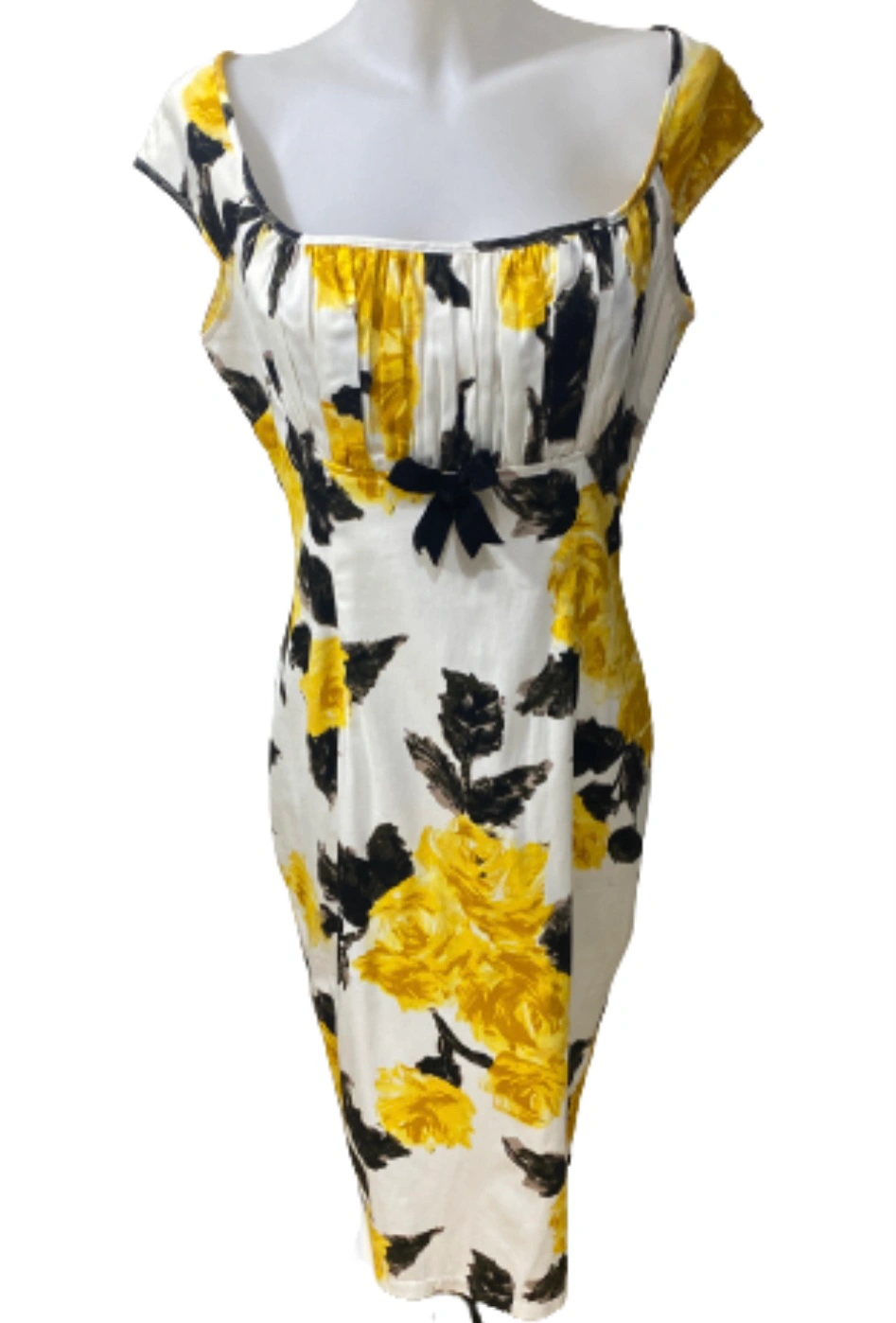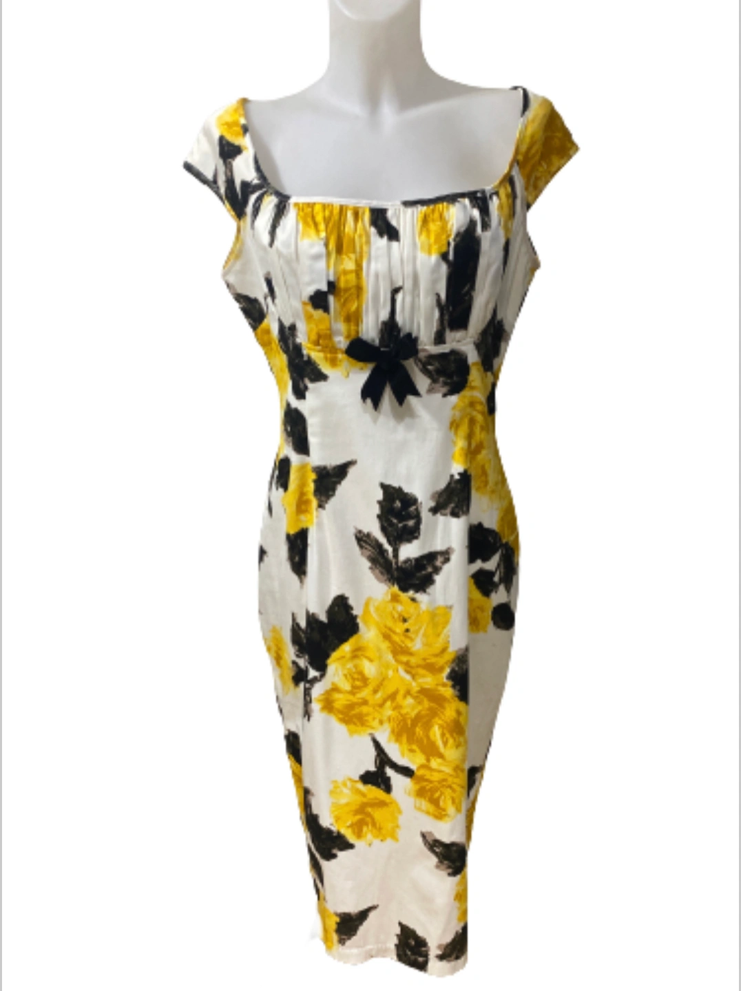 Authentic Pin Up Couture Girl Clothing Erica Yellow Roses Wiggle Dress in Size XL