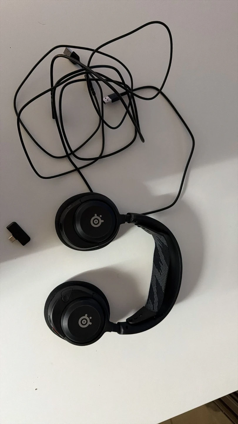 Selling a SteelSeries Arctis 7 gaming headset in black! It comes with the cable as shown in the picture. This headset is perfect for immersive gaming sessions. Get ready to level up your audio experience!
